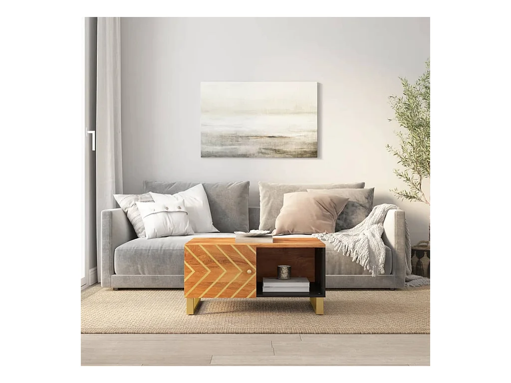 Table basse marron et noir 80x50x40 cm bois de massif manguier