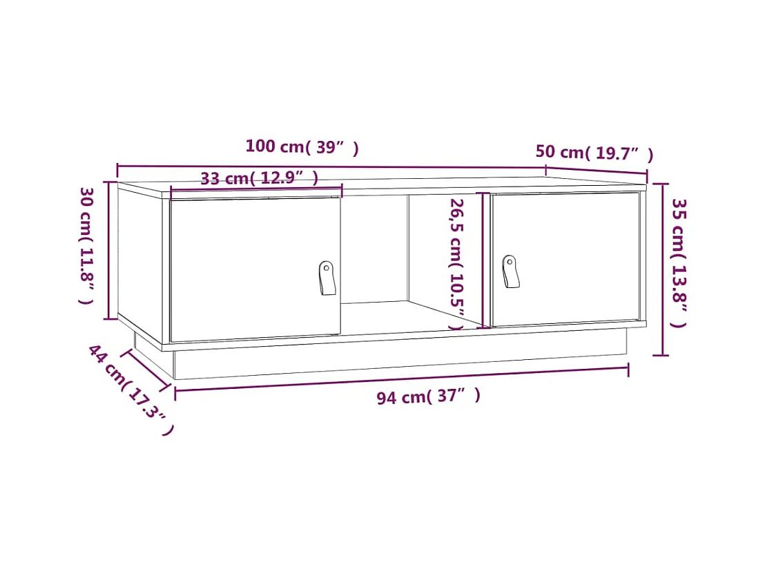 Table basse Marron miel 100x50x35 cm Bois massif de pin