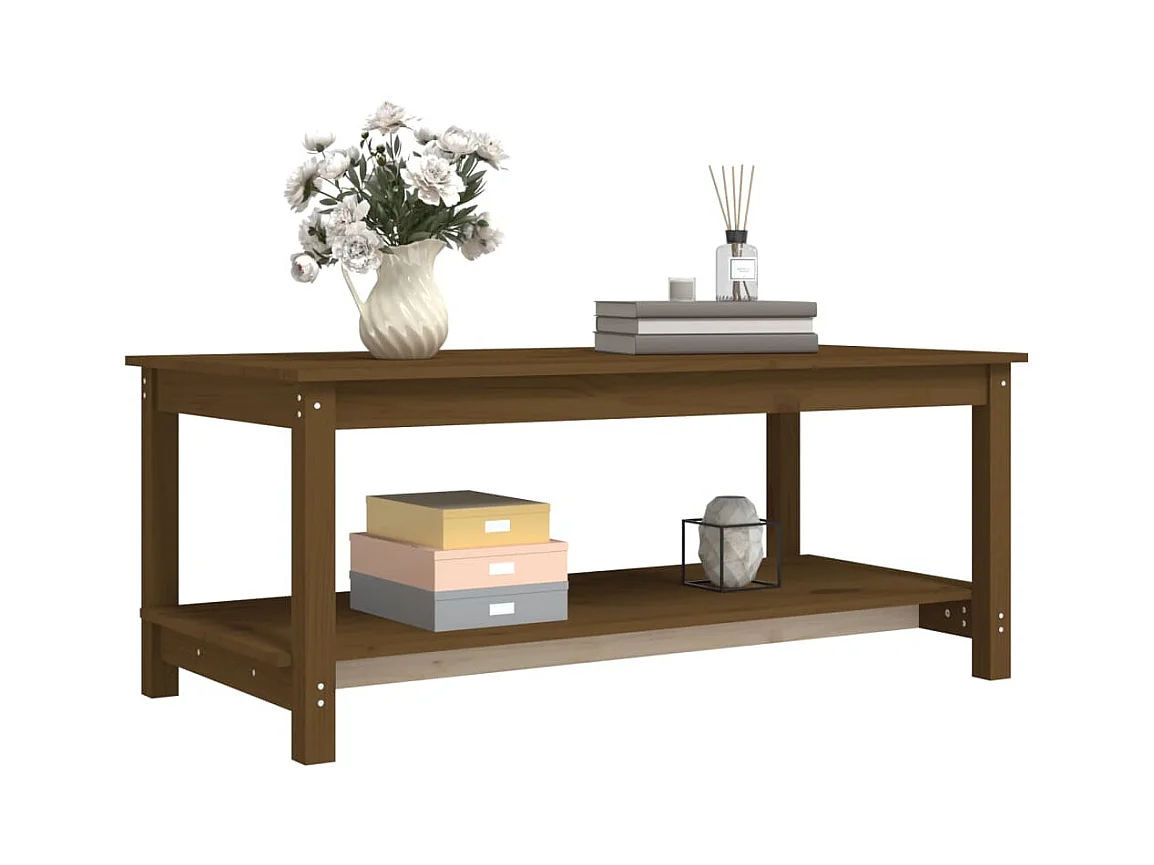 Table basse Marron miel 110x55x45 cm Bois massif de pin OFR59045 BonneVie Meuble