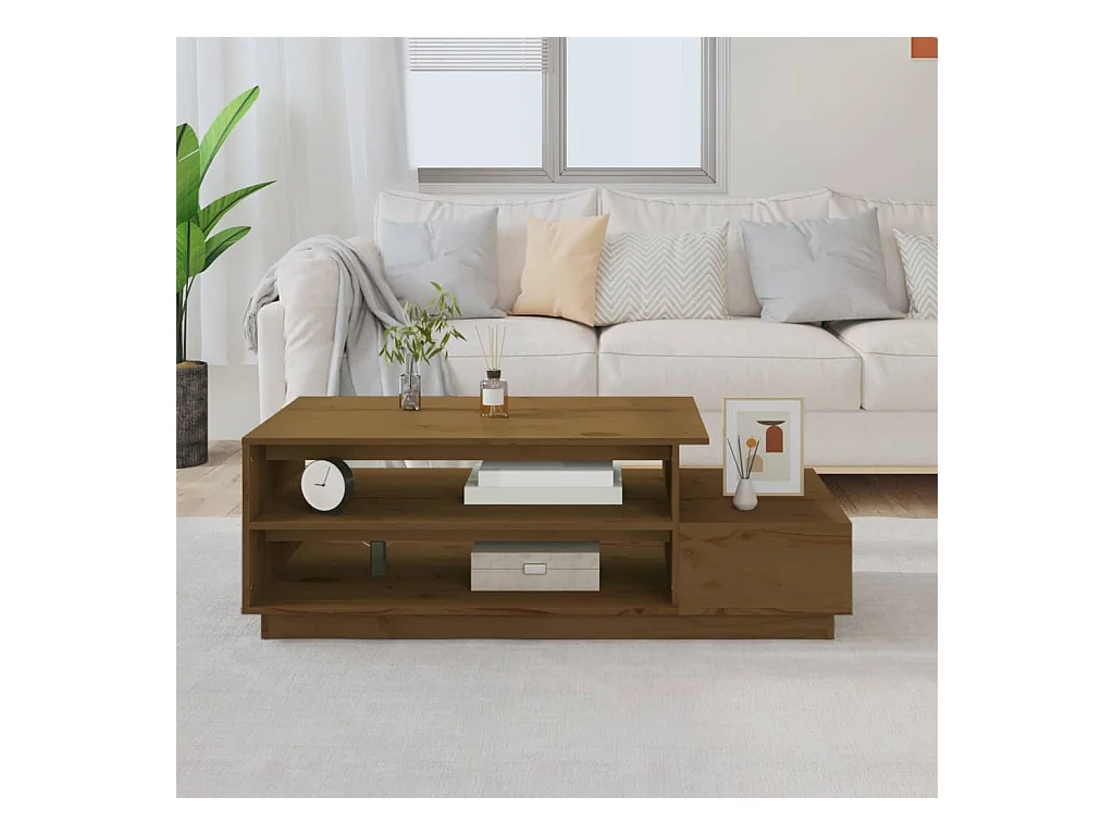 Table basse Marron miel 120x50x40,5 cm Bois massif de pin
