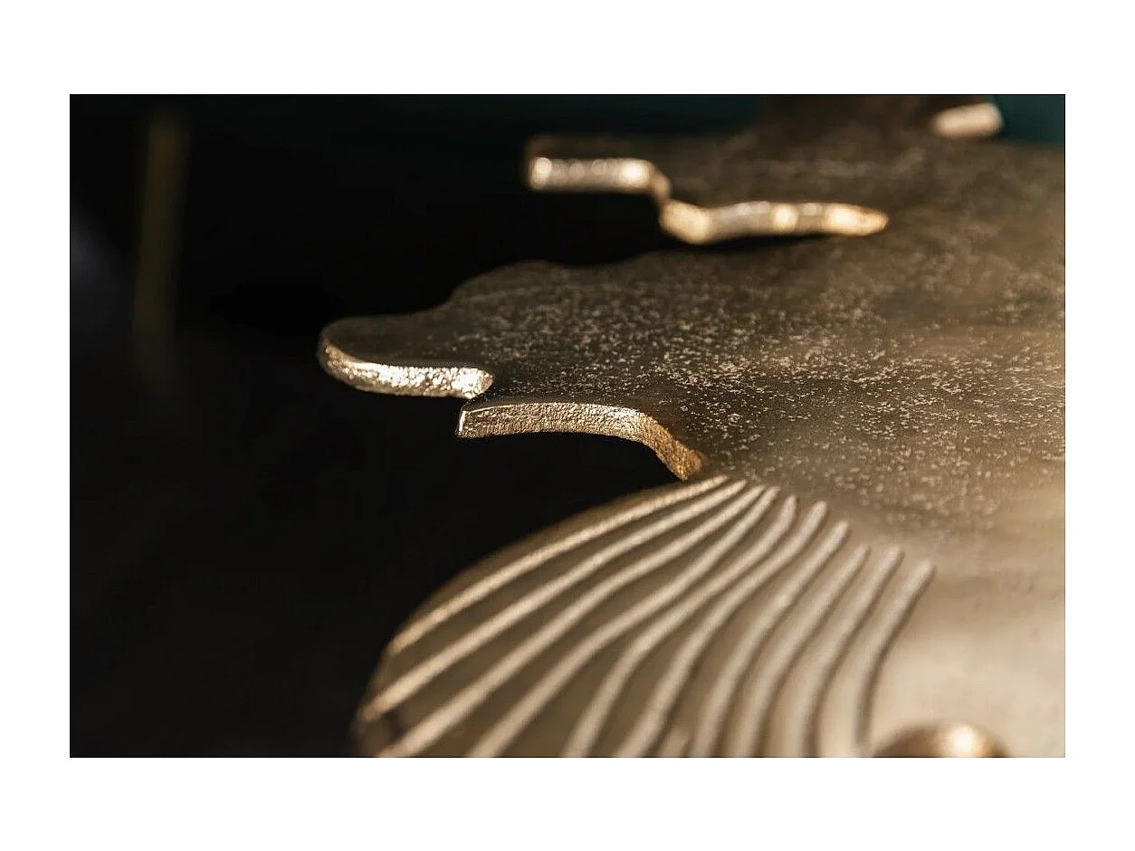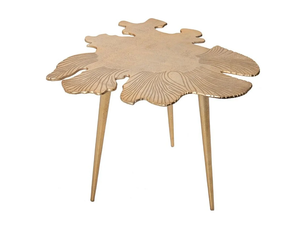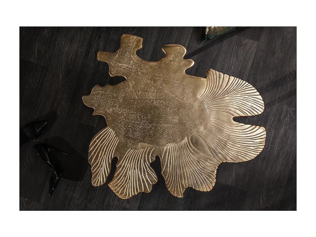 Table basse METRIX dorée avec plateau en forme de feuille – Table basse design en aluminium