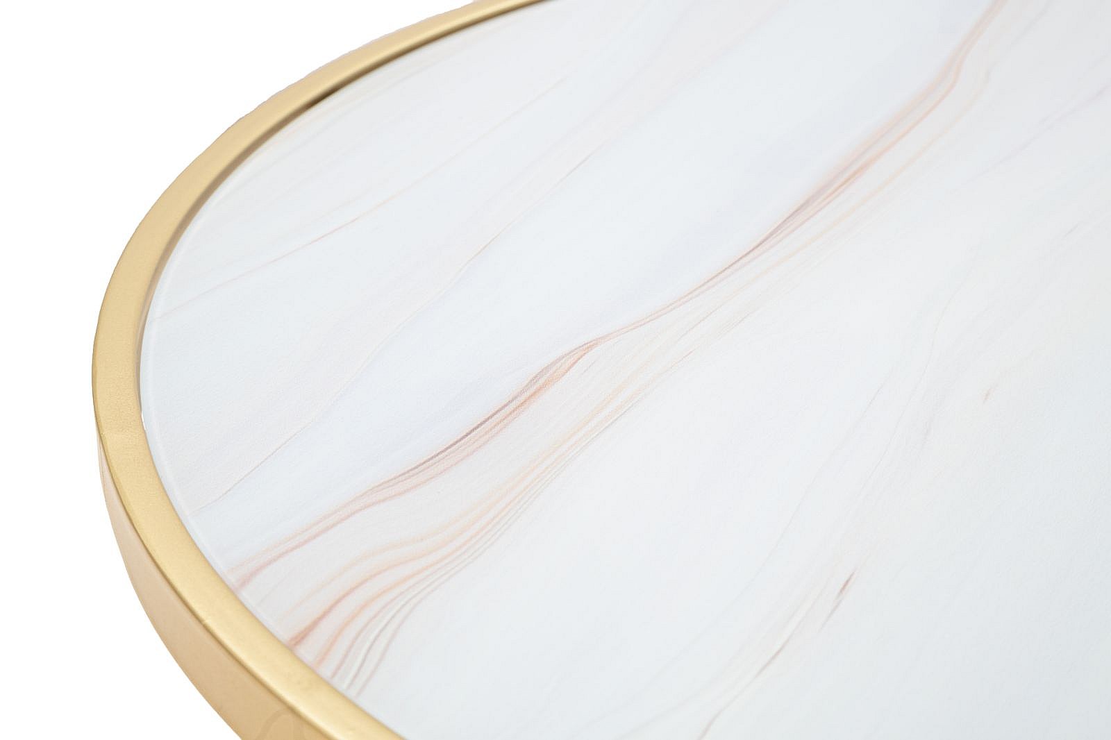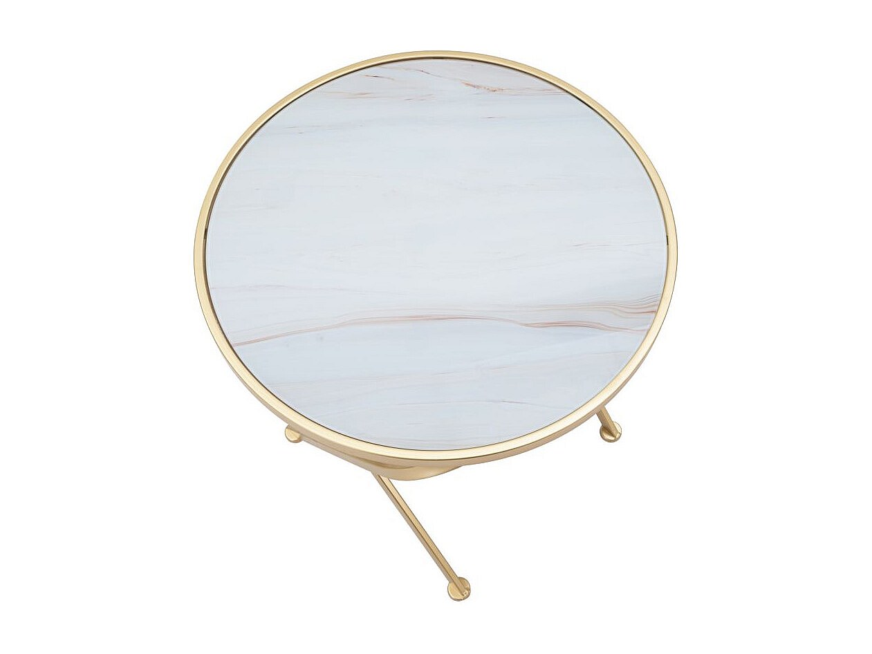 Table basse ronde avec structure en métal doré et plateau en marbre. Le design géométrique simple mais affirmé donne une touche de particularité à chaque environnement.