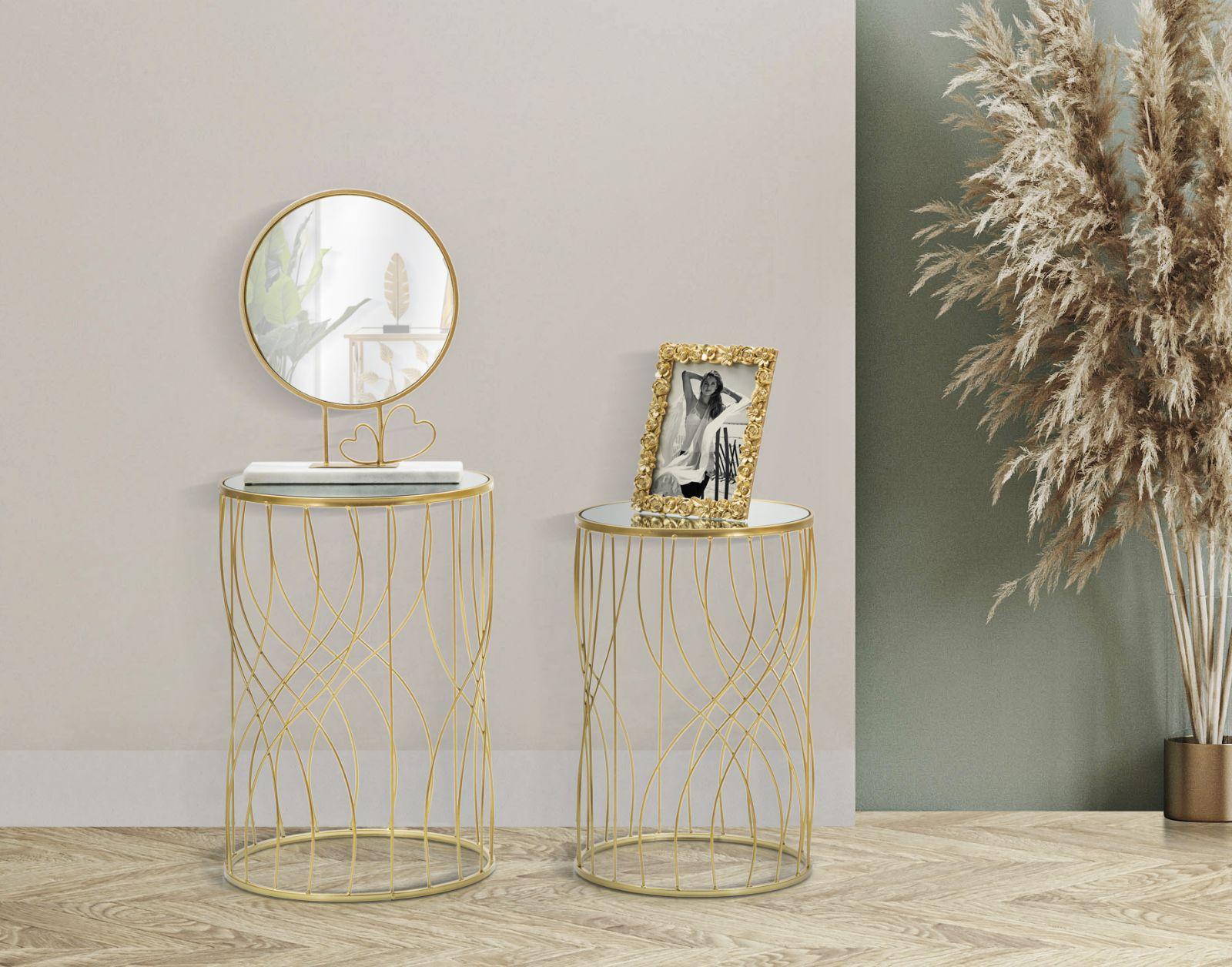 Table d'Appoint MF551, Or, 44x50,5x55,5 cm, Epikasa