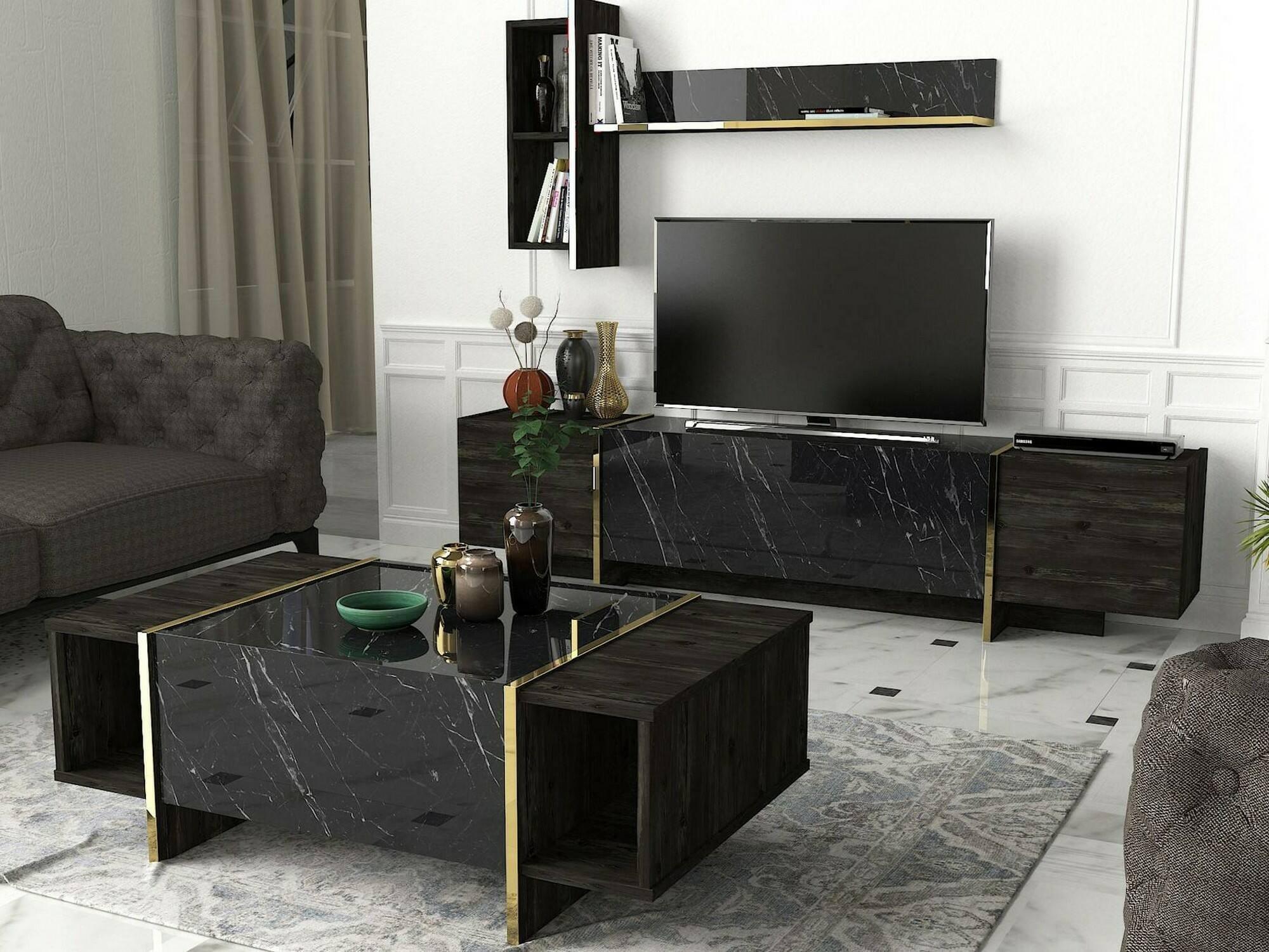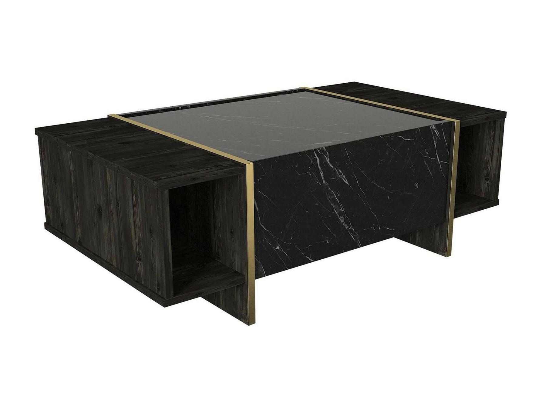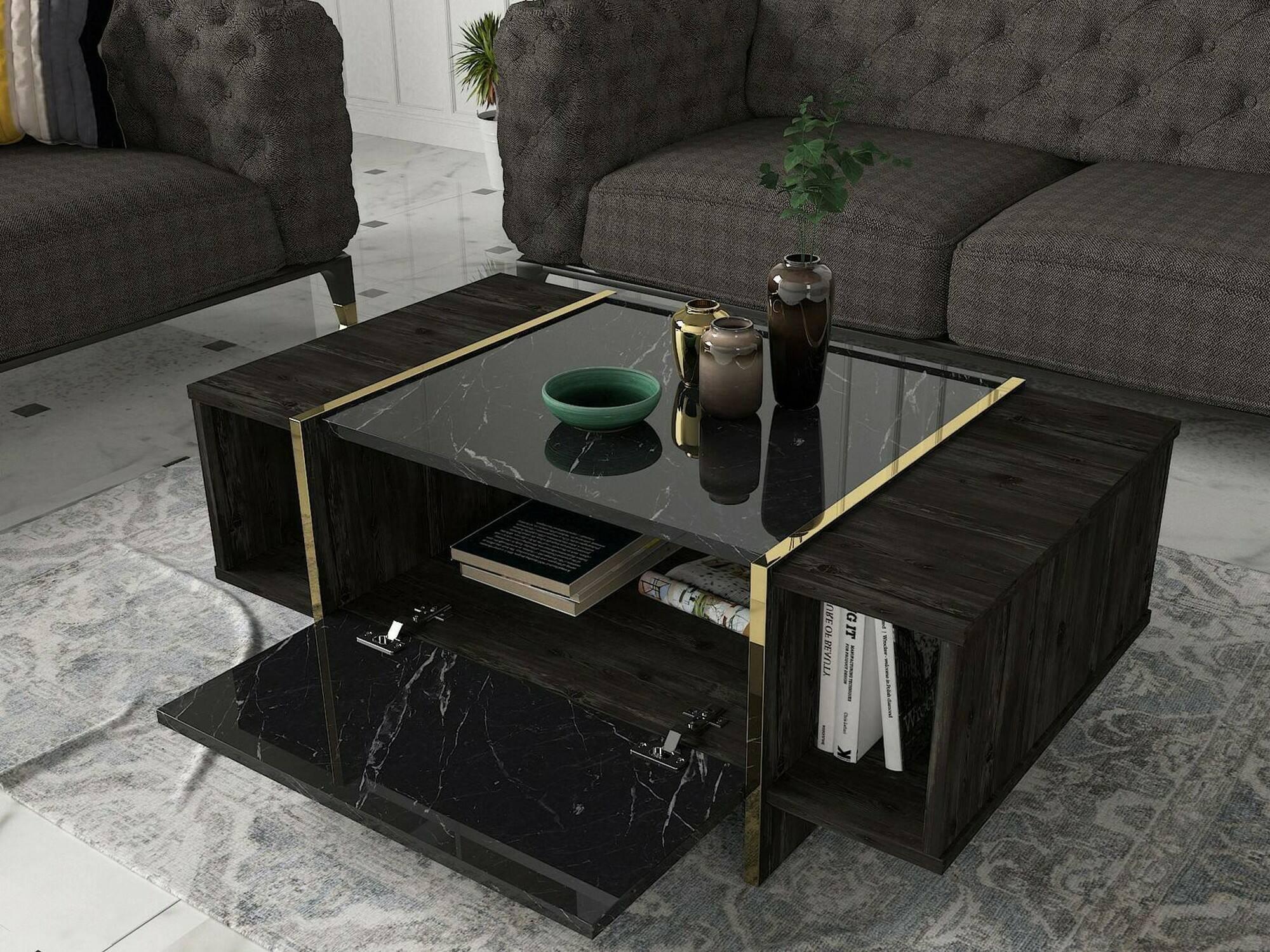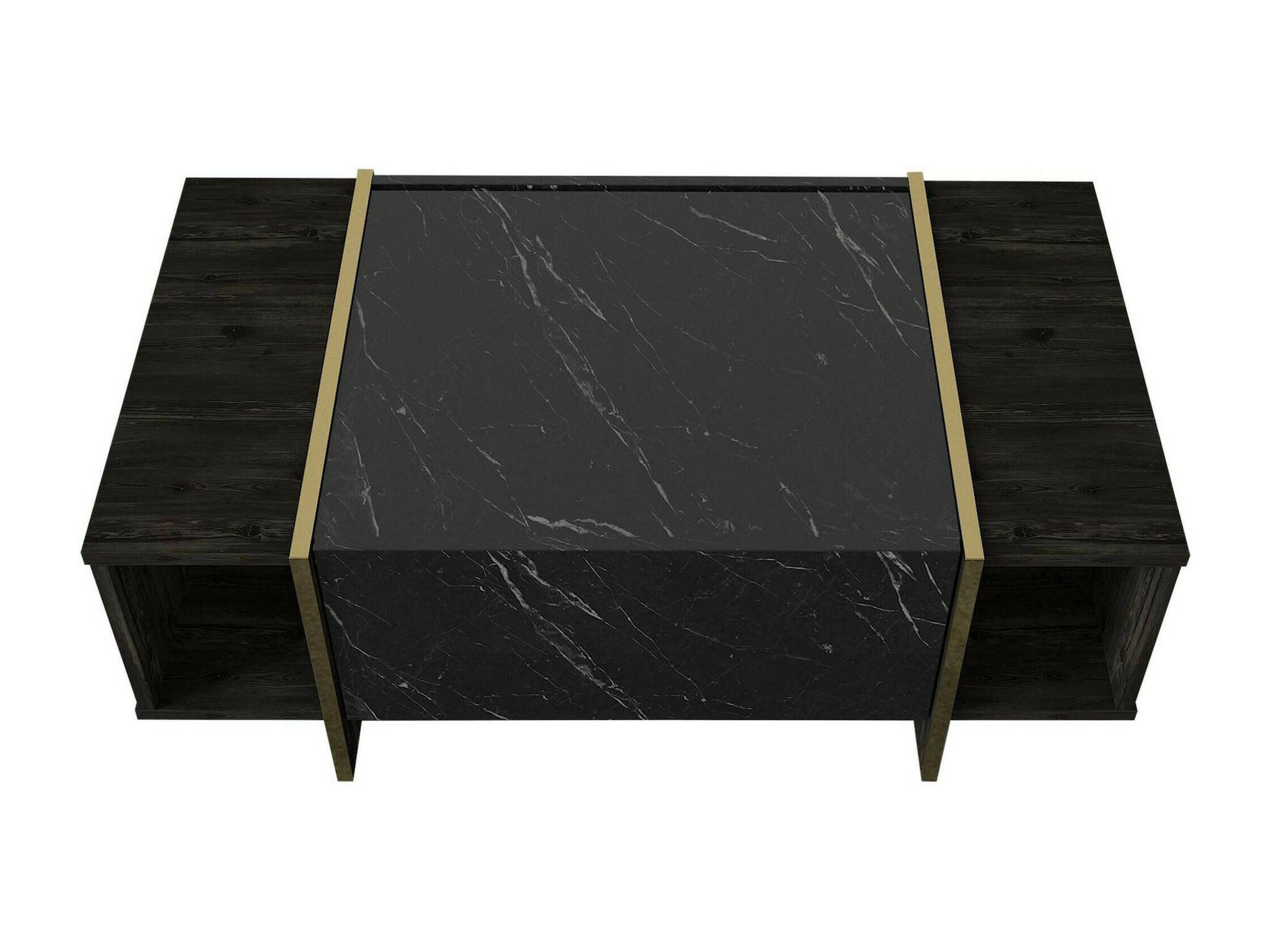 Table basse Miram, Table basse, Porte-revues pour canapé, Etagère de salon, 104x60h37 cm, Noir et Or