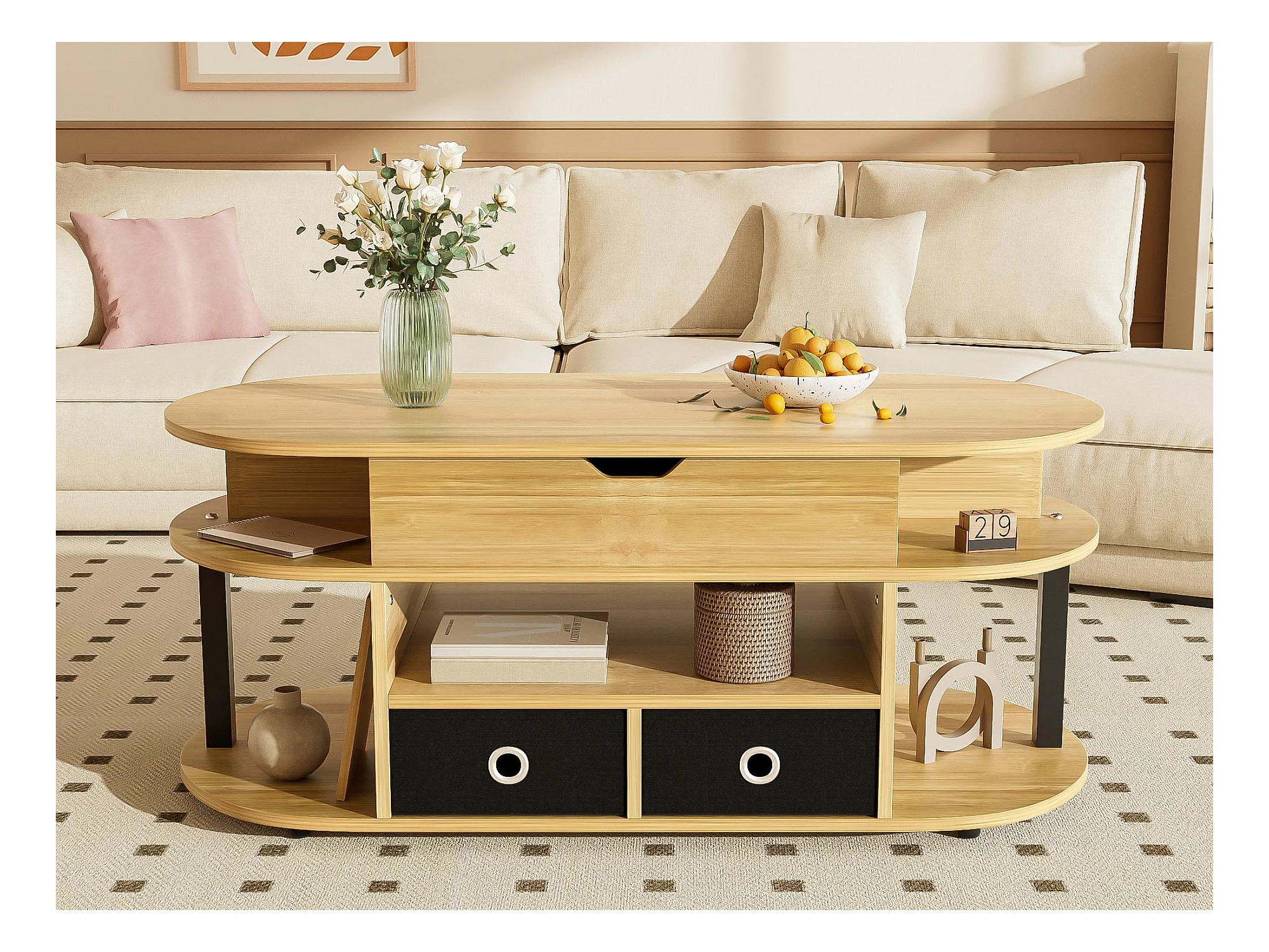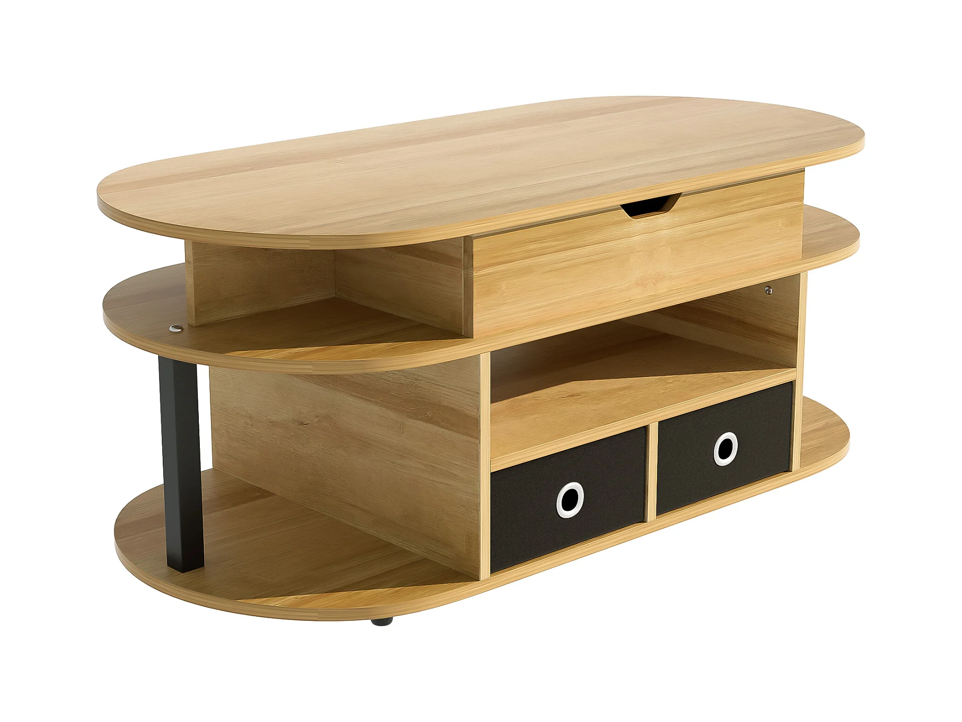 Table basse - avec rangement intérieur pivotant - Naturel & Noir