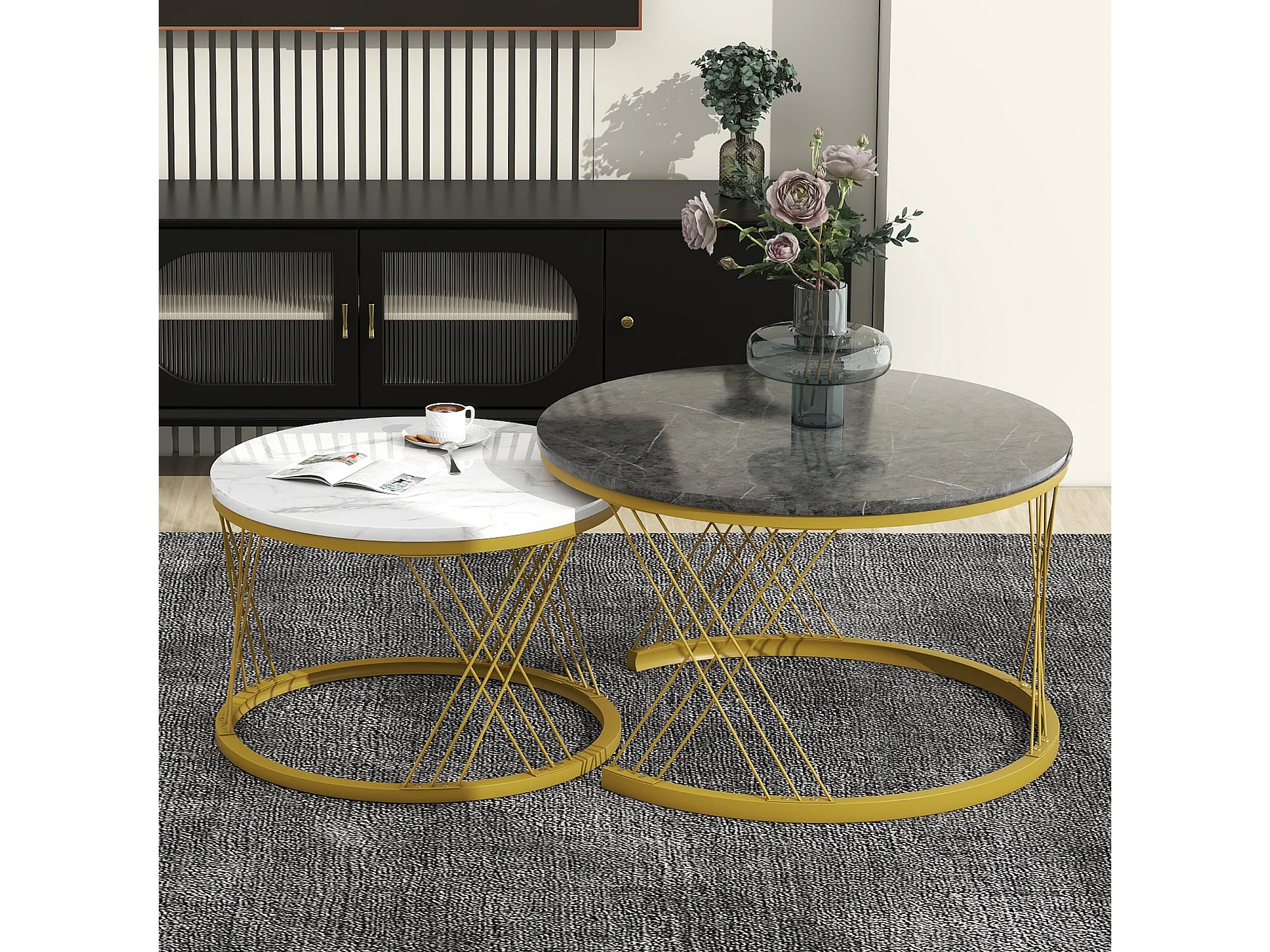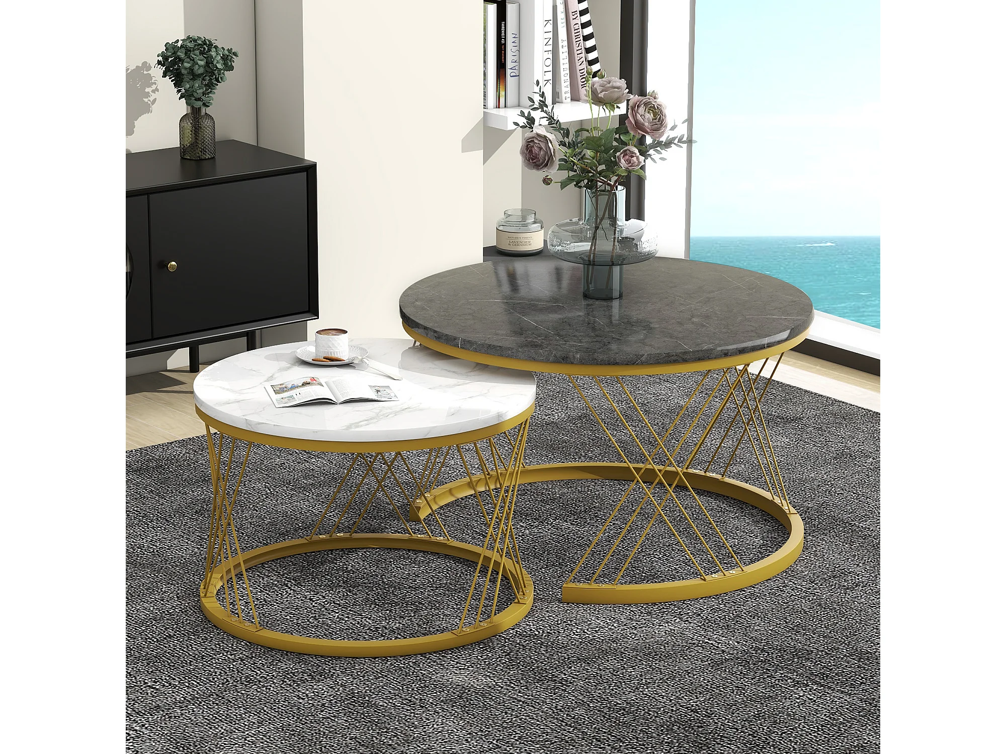 Table basse 70x70x45cm/45x45x40cm ensemble salon, style moderne luxe léger, stable et polyvalent, MDF, gris