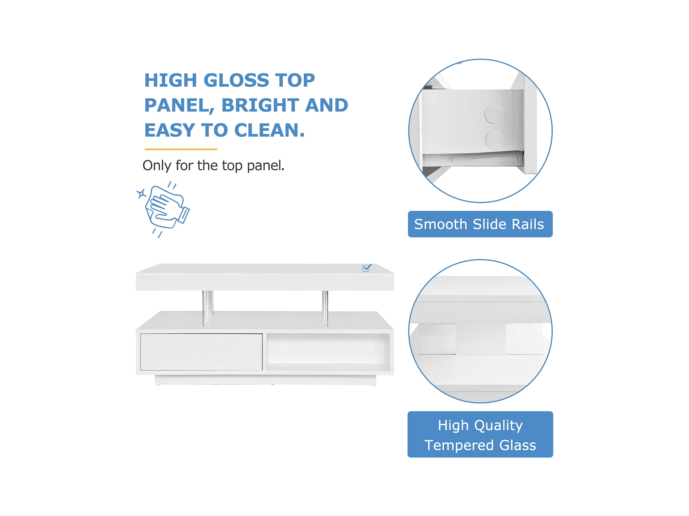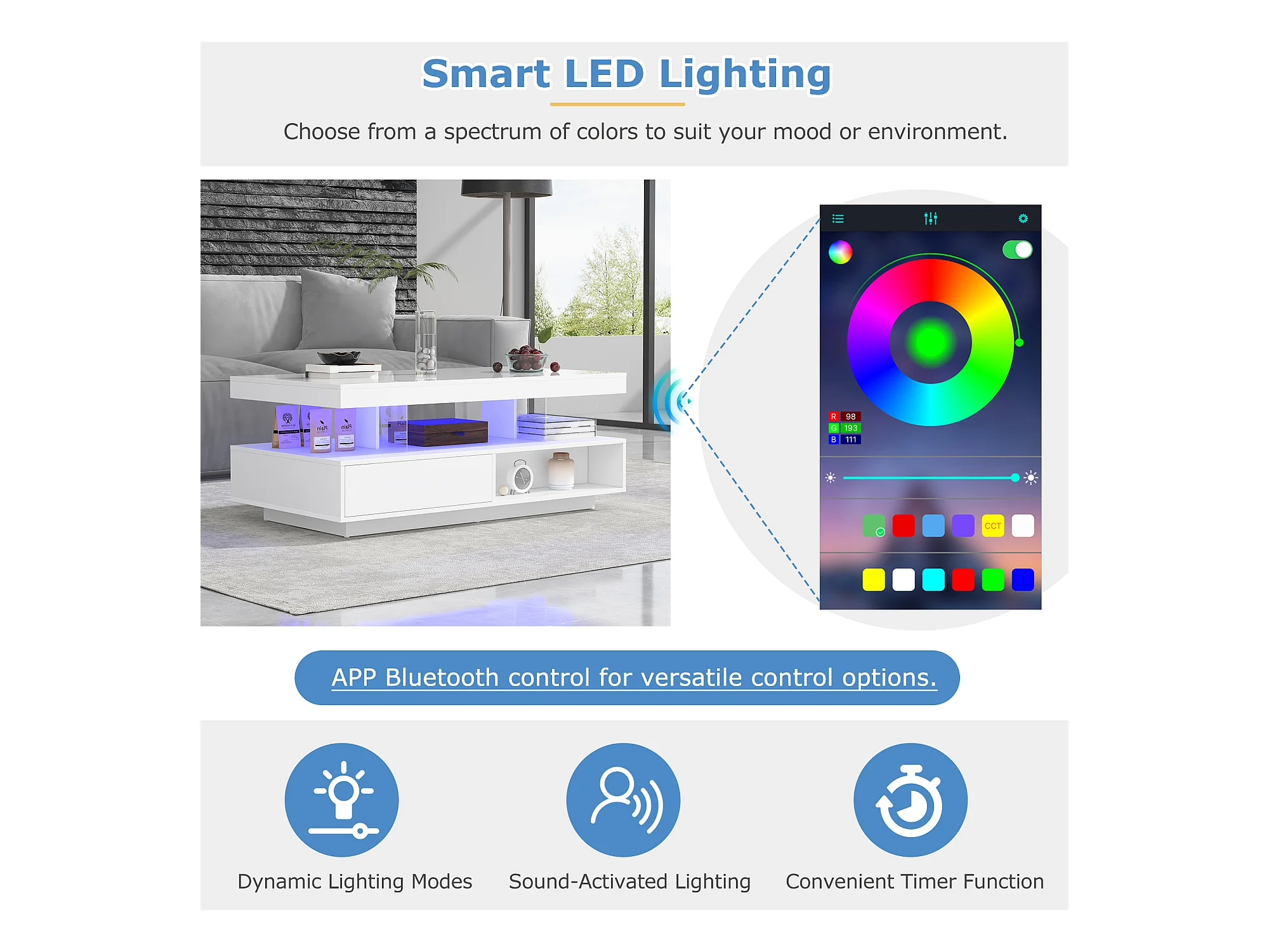 Table basse - avec système d'éclairage LED contrôlé par application - Blanc