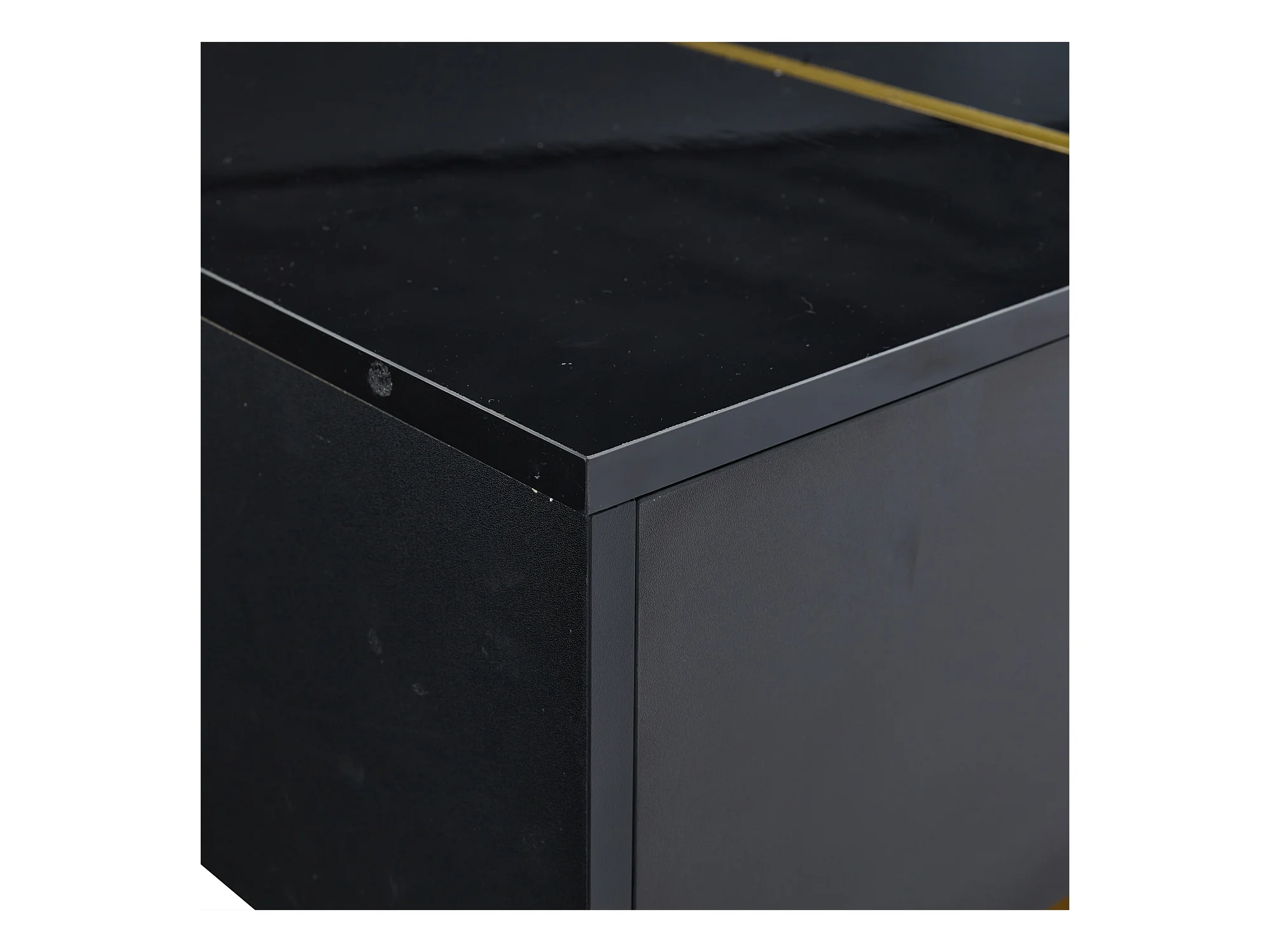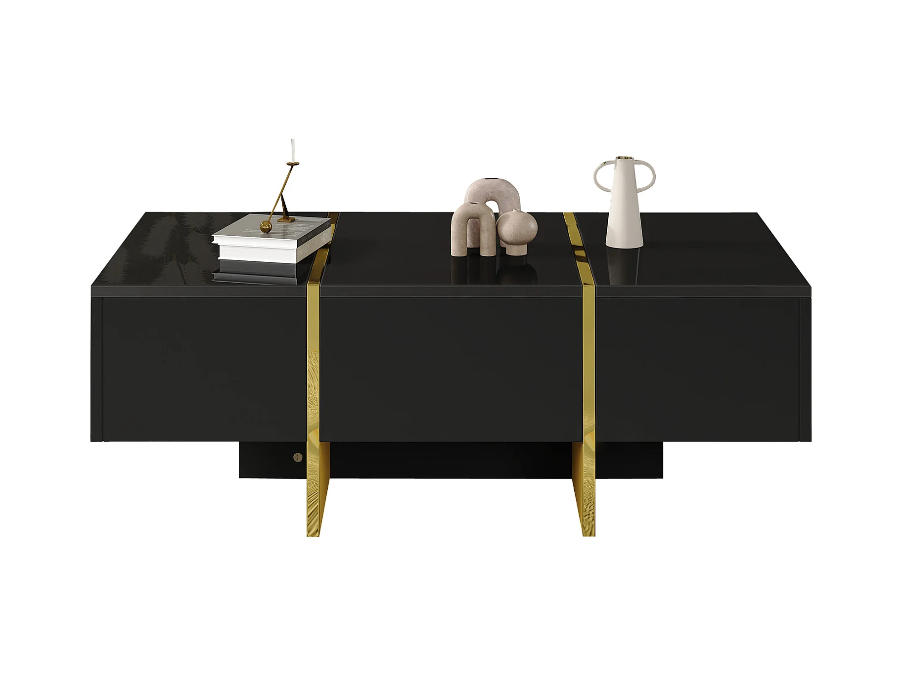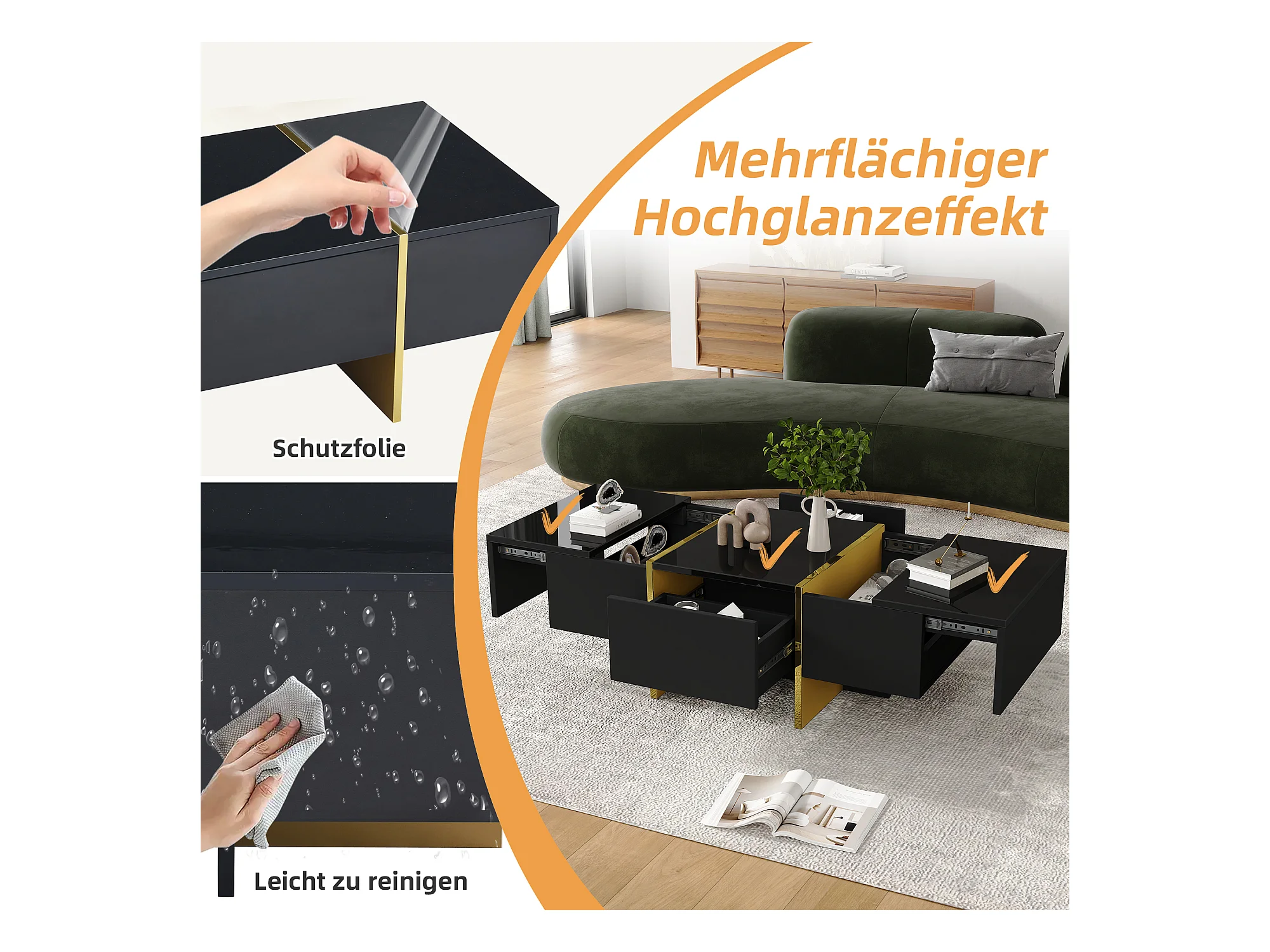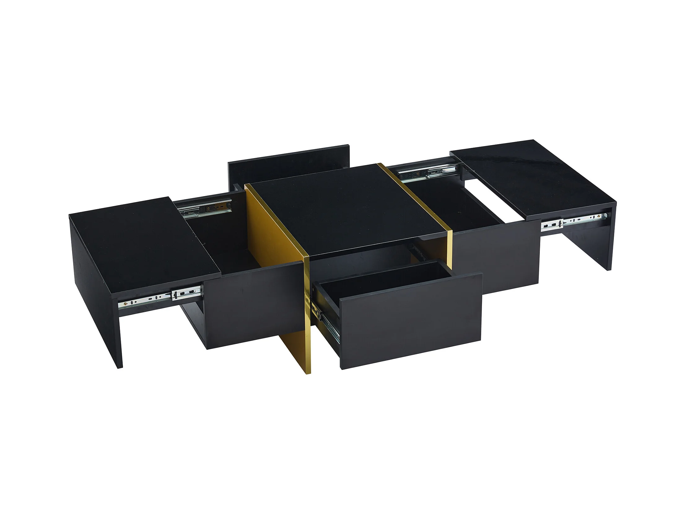 Table basse moderne laquée, 4 tiroirs de rangement, MDF, noir (100x50x35 cm)