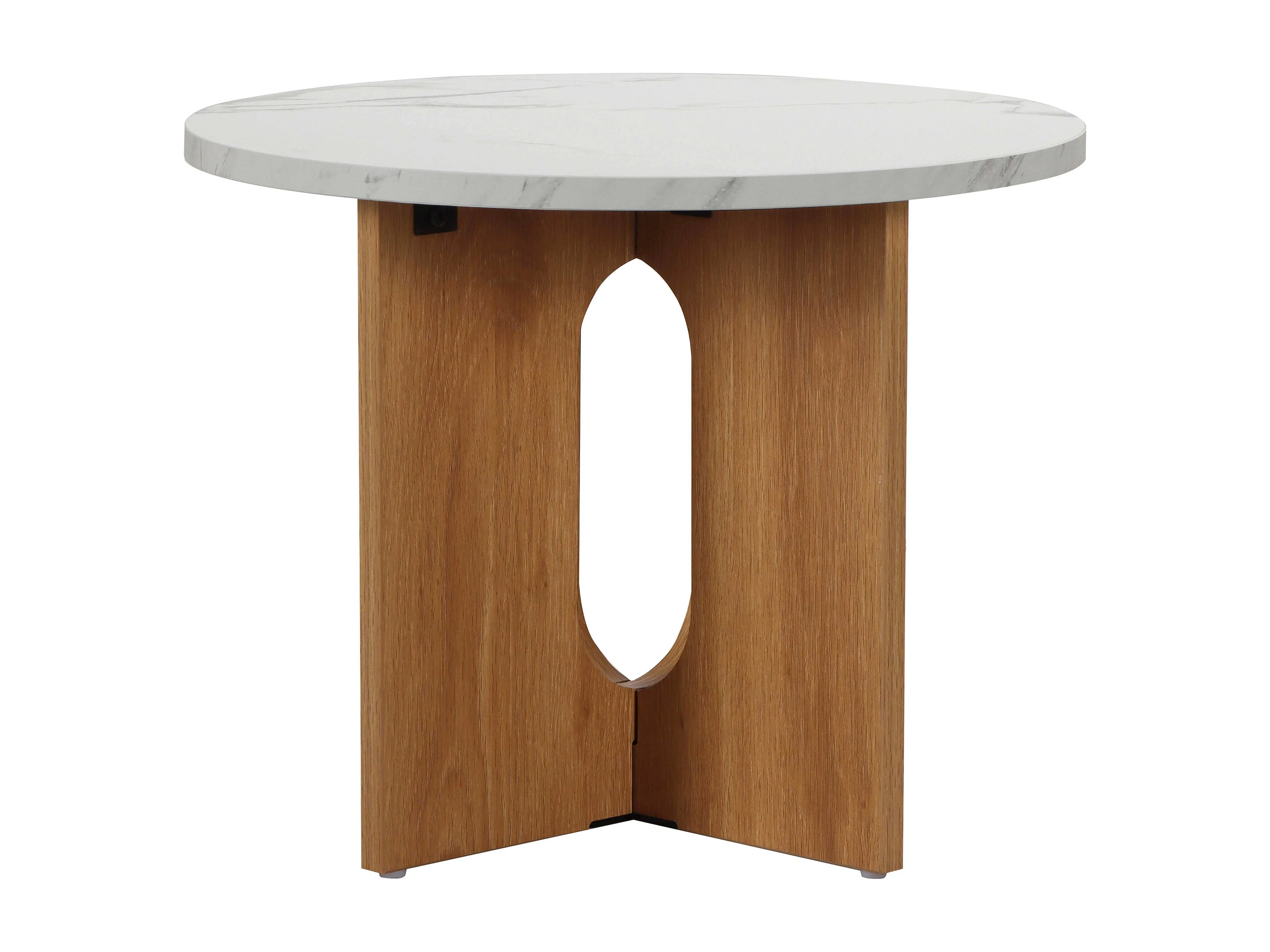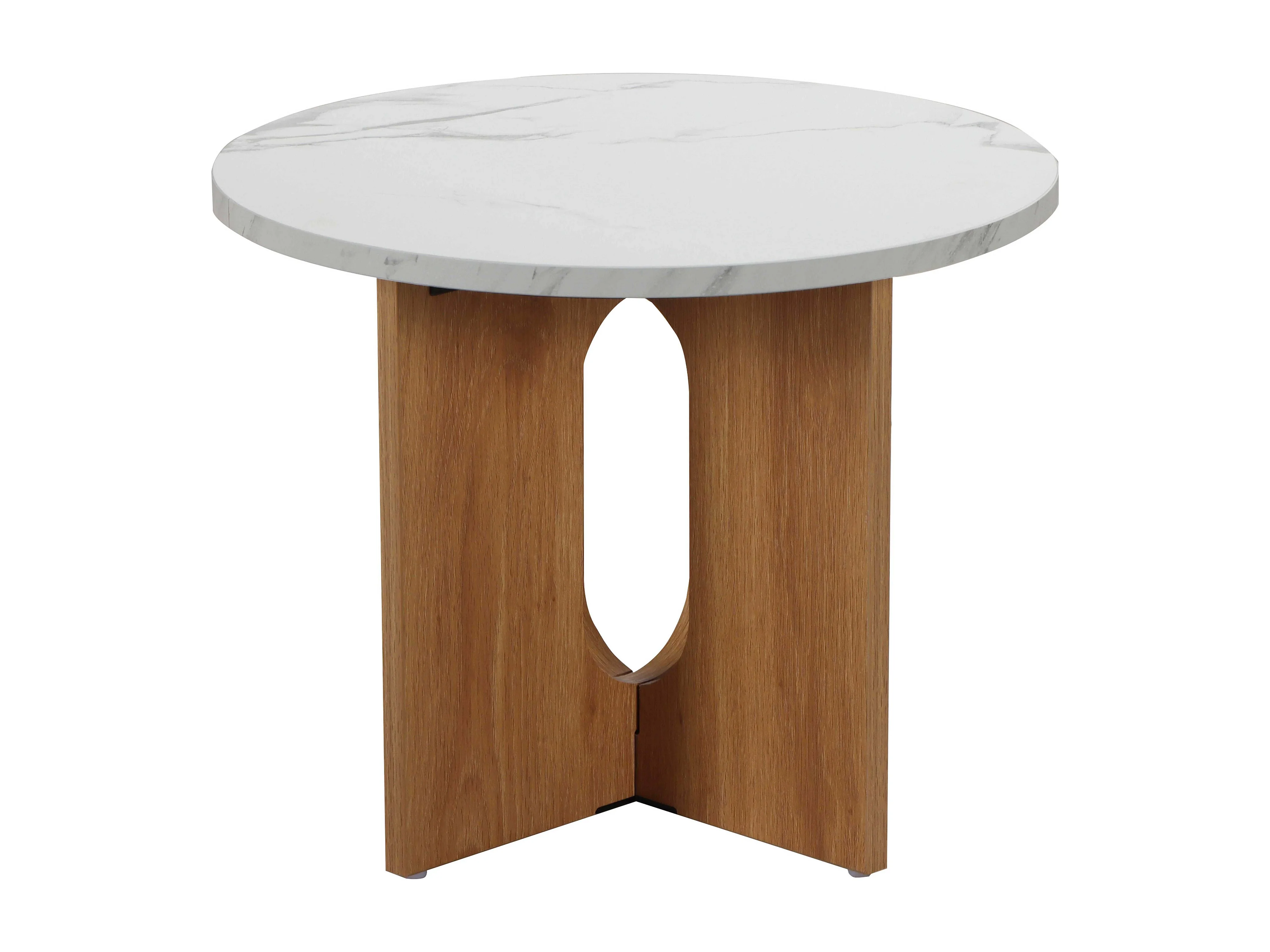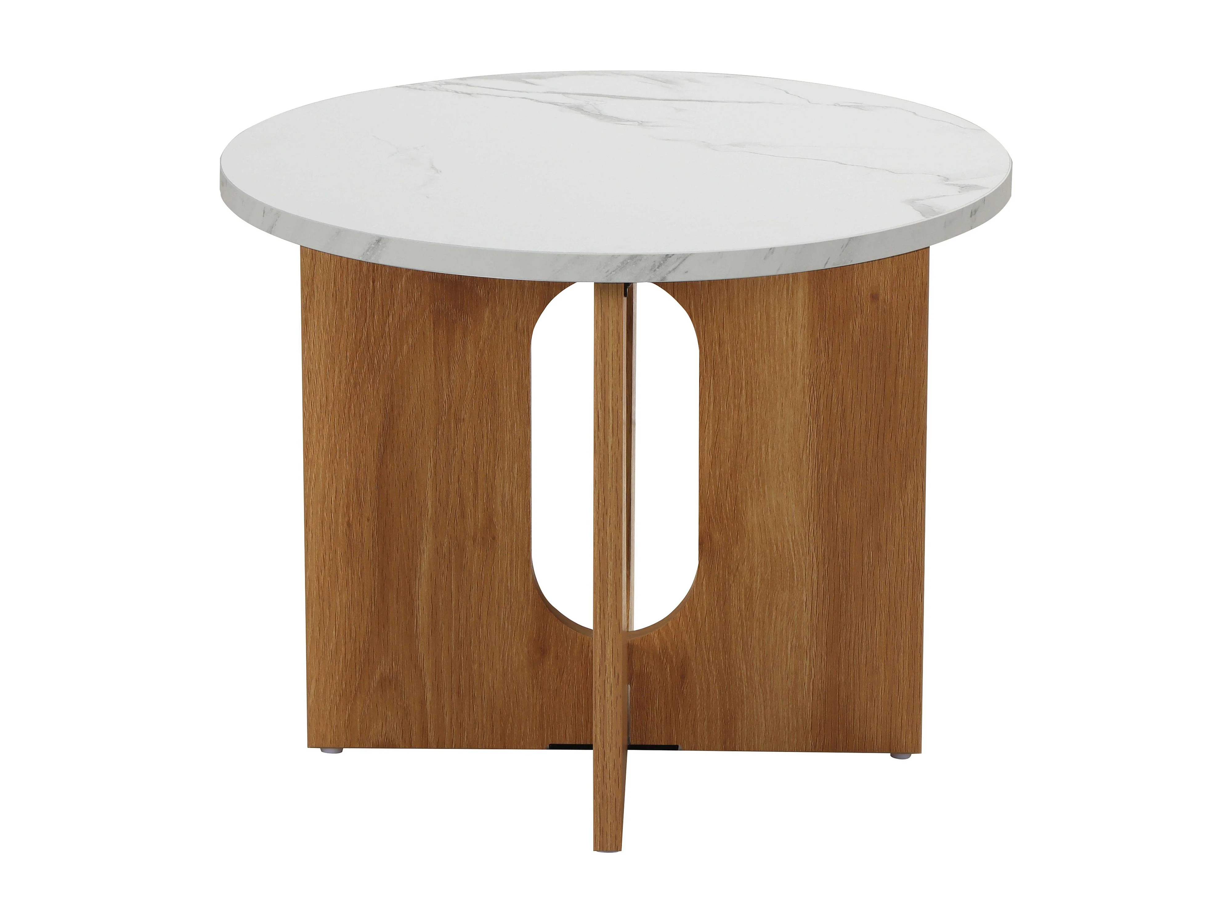 Table basse moderne ronde 50 cm effet marbre bois clair