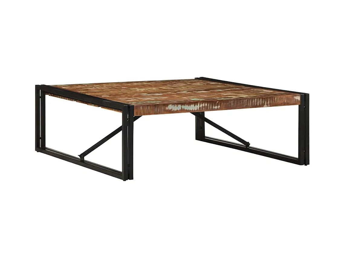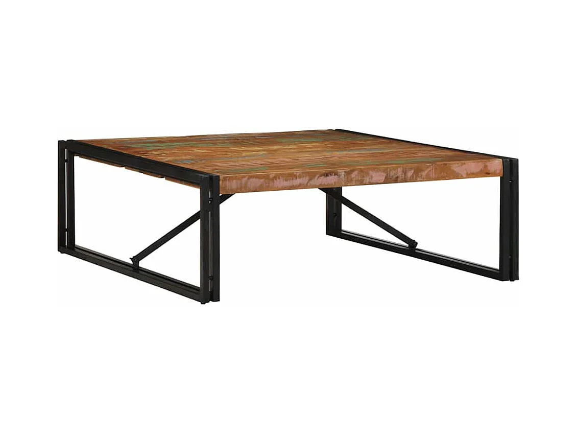 Table basse multicolore 80x80x35 cm bois de récupération massif