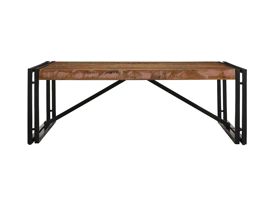 Table basse multicolore 100x100x35 cm bois récupération massif