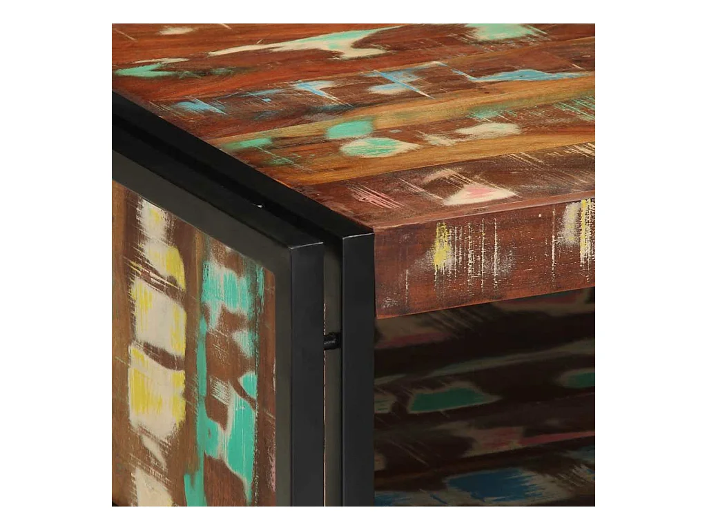 Table basse multicolore 70x50x38 cm bois de récupération massif