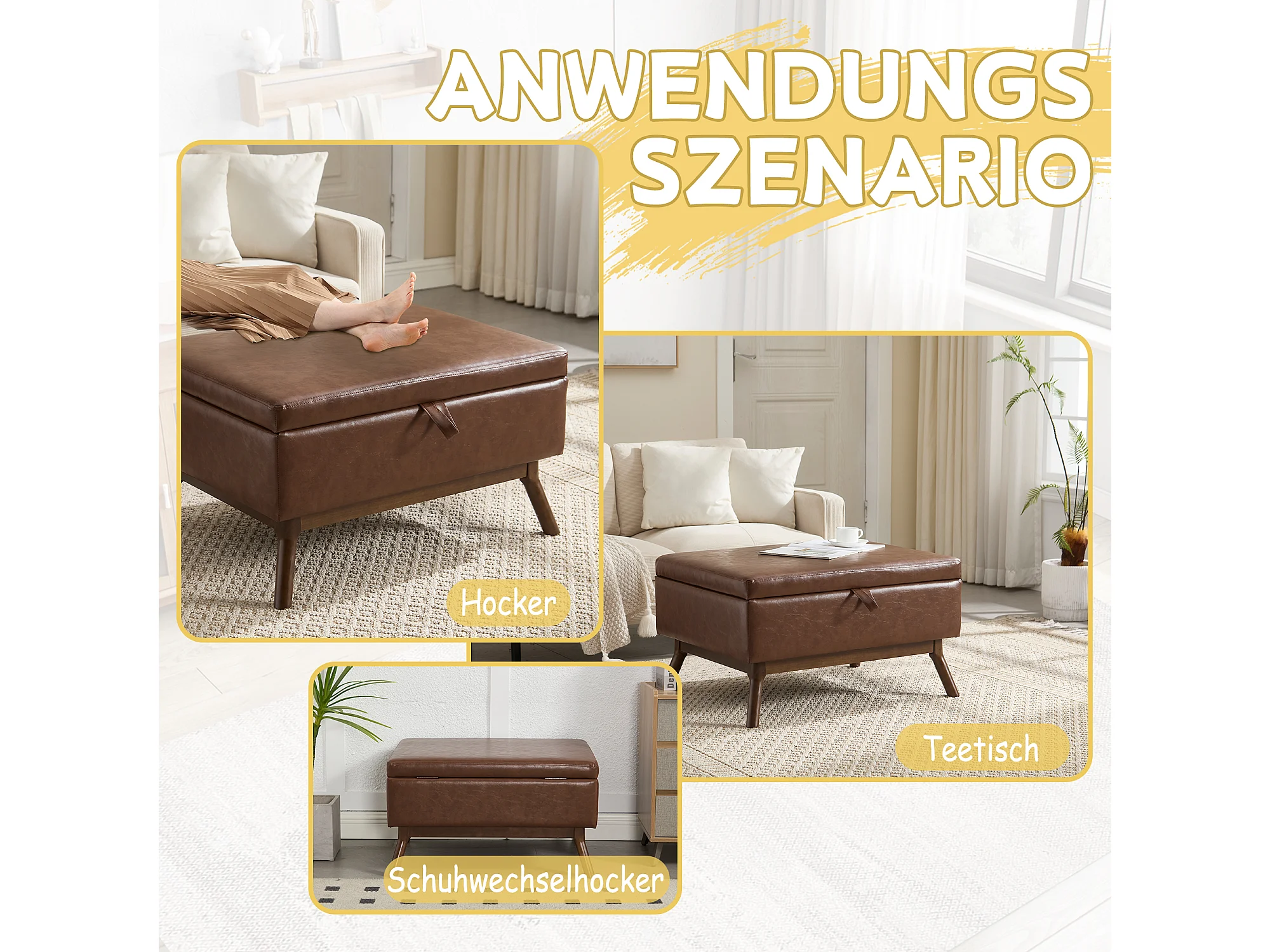 Pouf Coffre Multifonction en Simili Cuir Marron - Design Rétro Chic - Assise, Rangement et Déco pour Maison