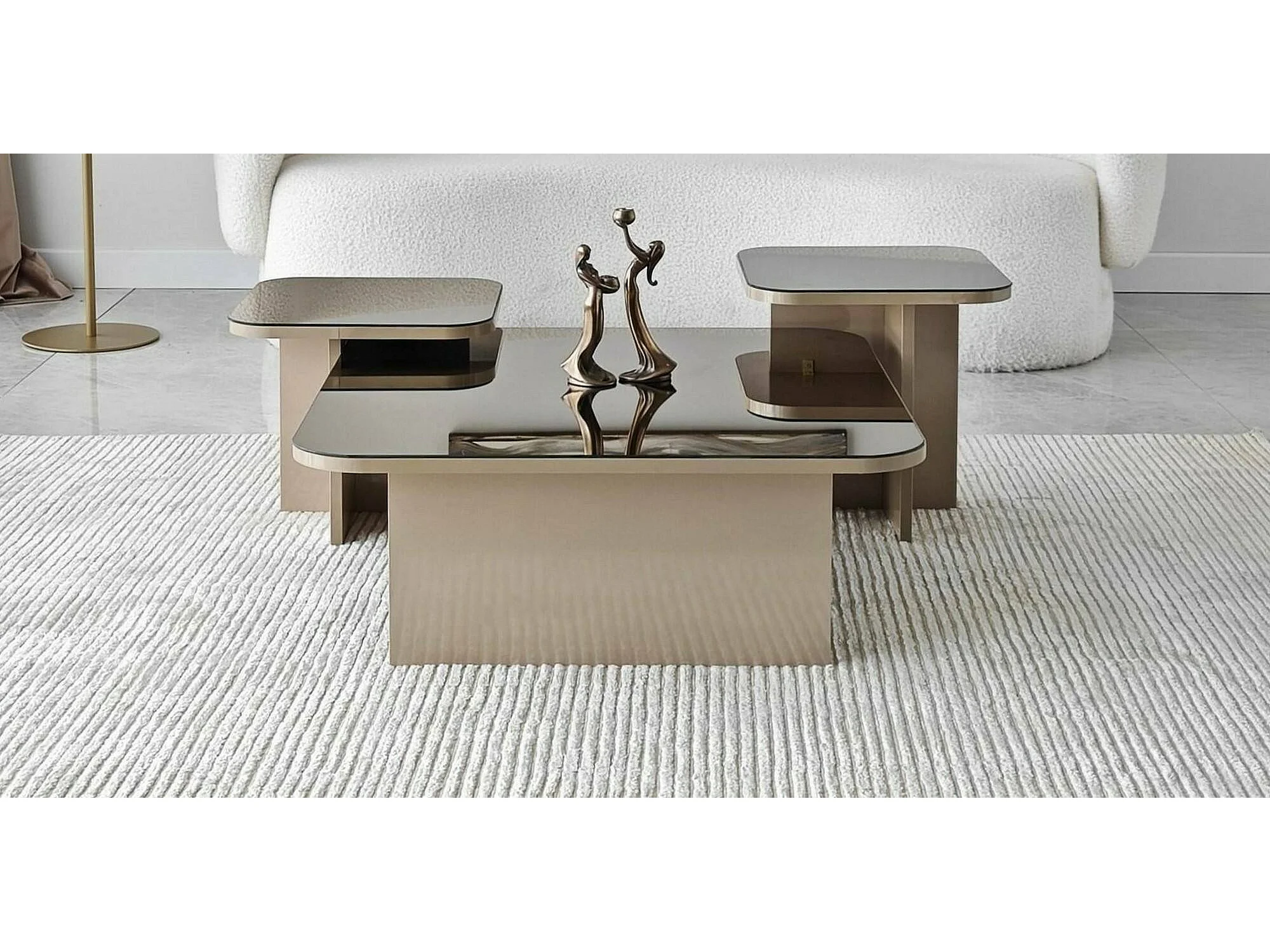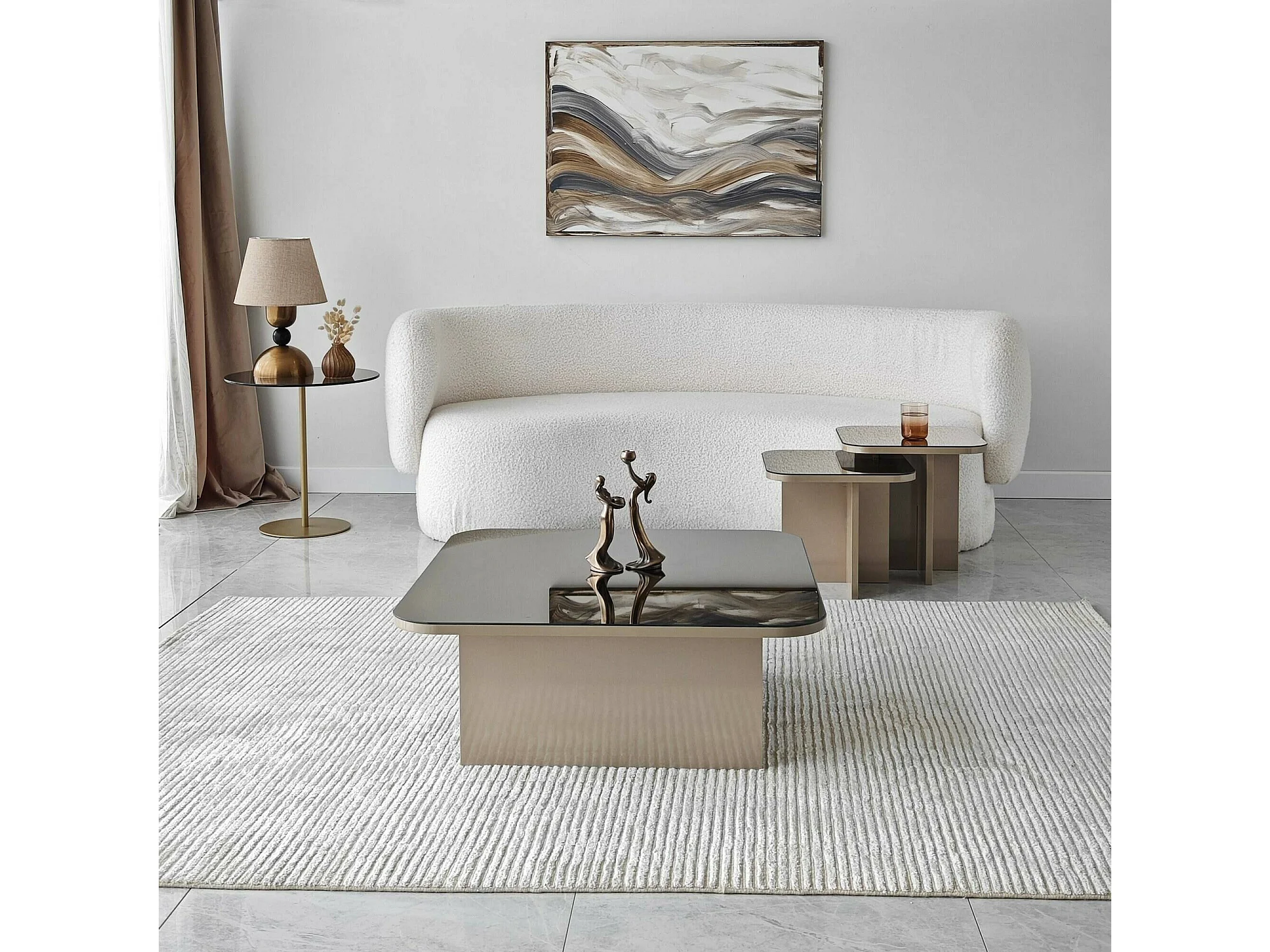 Table basse Nashira, Table basse, Porte-revues pour canapé, Etagère de salon, 80x80h40 cm, Taupe et Fumé
