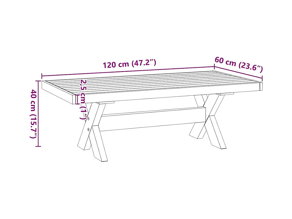 Table basse NOAIN pieds en forme de X 120x60x40 cm massif pin