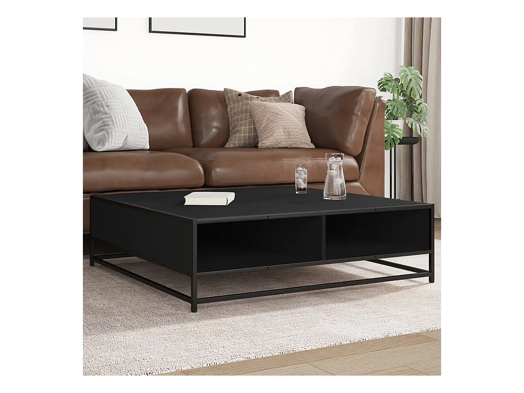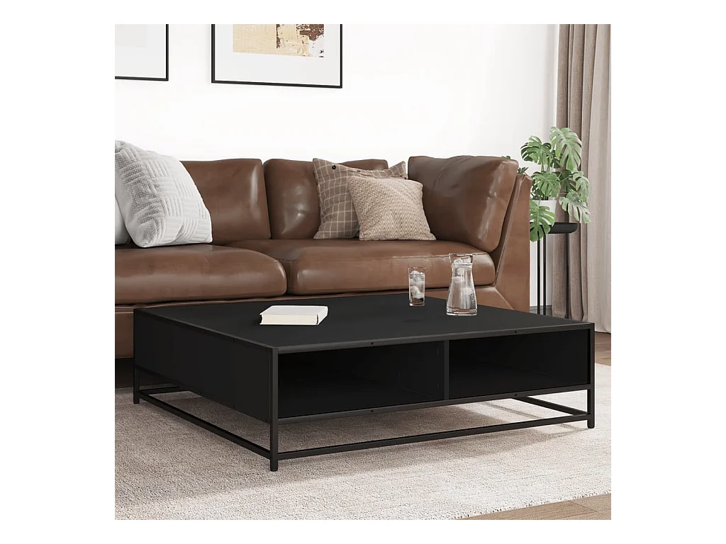 Table basse noir 100x100x30 cm bois d'ingénierie et métal