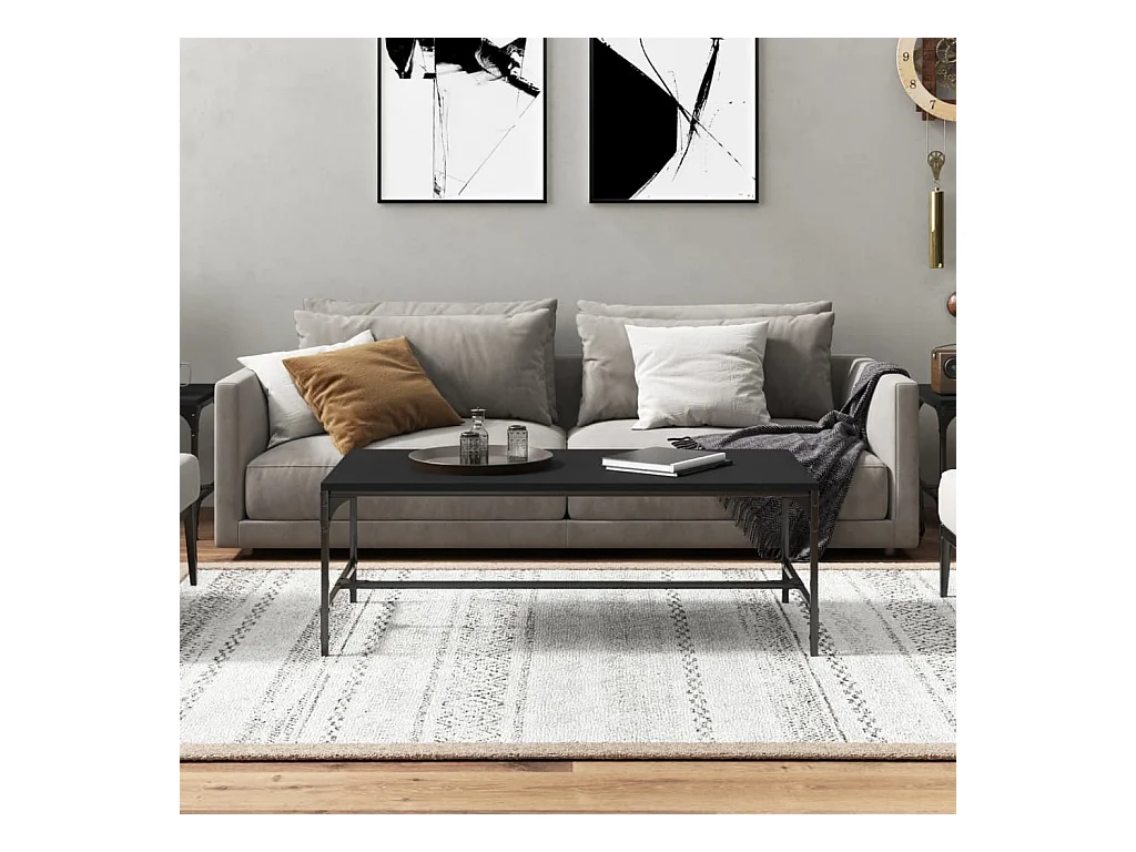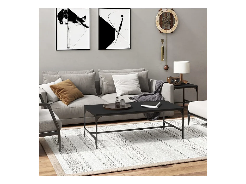 Table basse noir 100x50x35 cm bois d'ingénierie et métal
