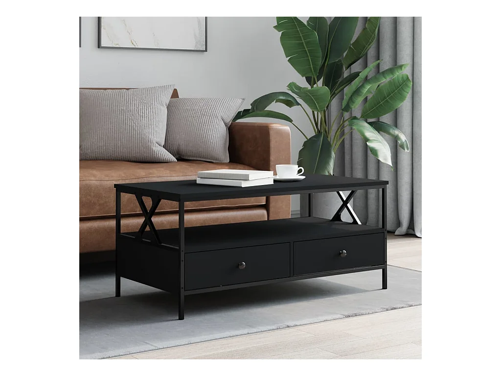 Table basse noir 100x50x45 cm bois d'ingénierie et métal FR80695