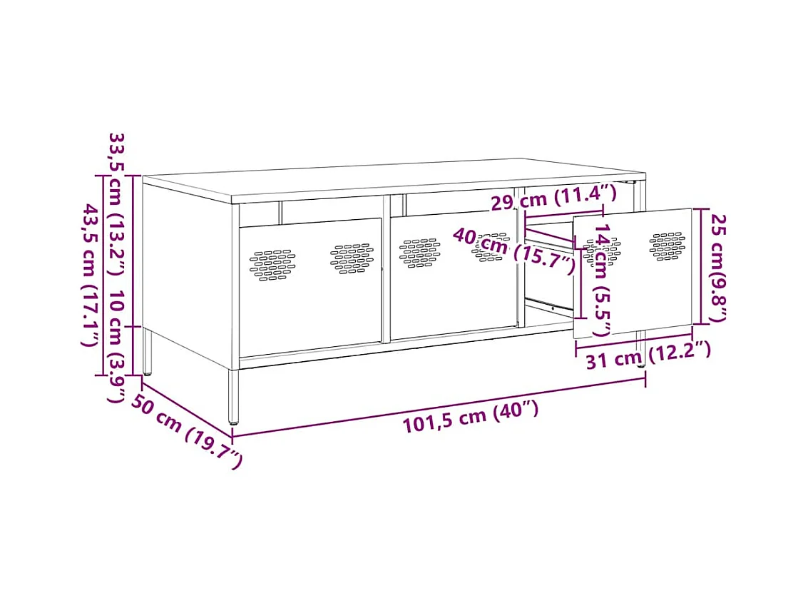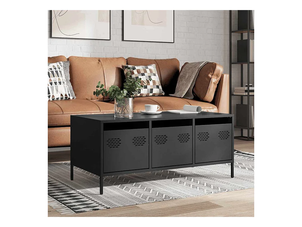 Table basse noir 101,5x50x43,5 cm acier laminé à froid