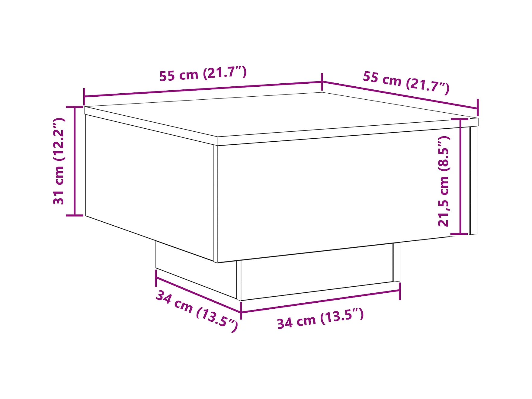 Table basse en chêne noir 55x55x42 cm en bois d'ingénierie