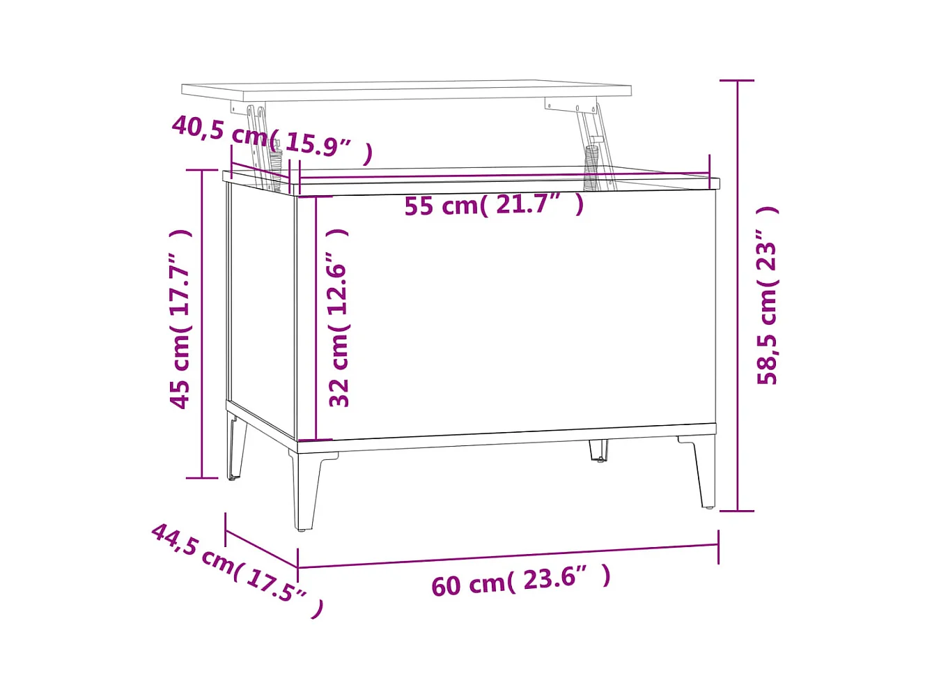 Table Basse Avec Plateau Relevable Noir Chêne 60x44,5x45 cm Bois d'ingénierie
