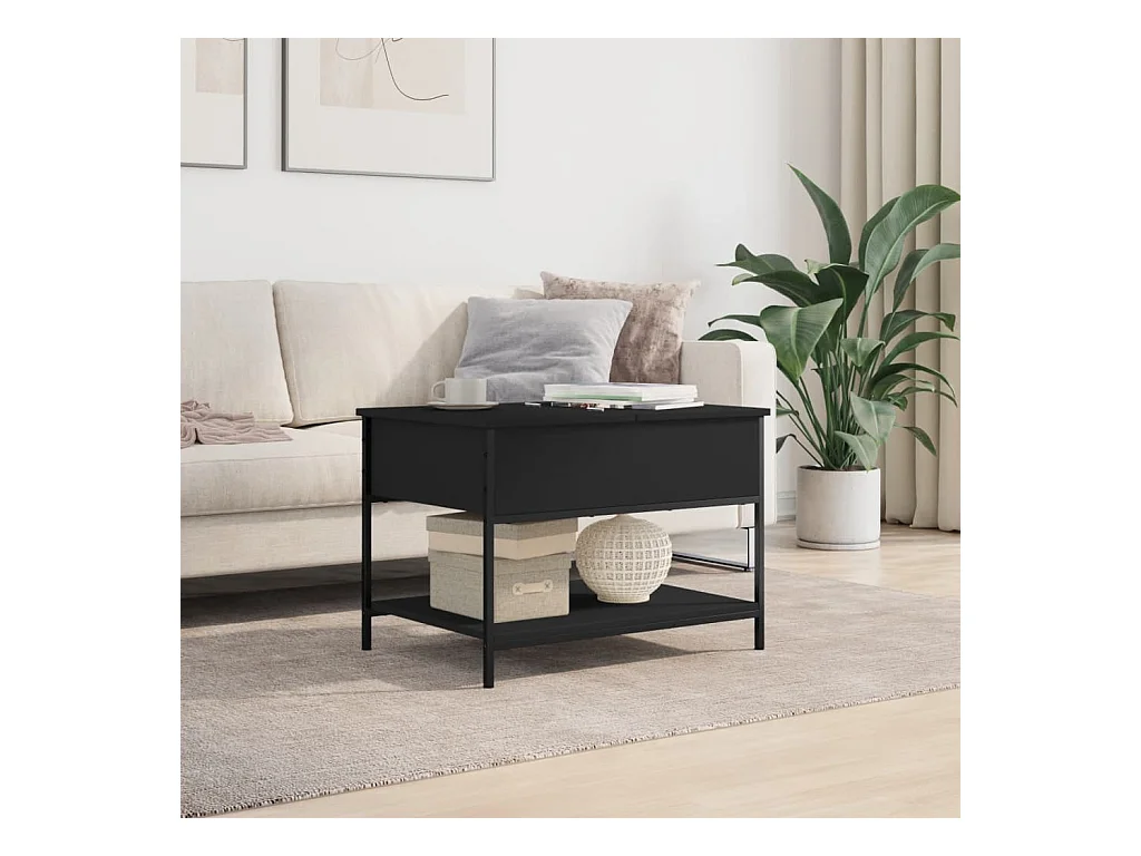 Table basse noir 70x50x50 cm bois d'ingénierie et métal