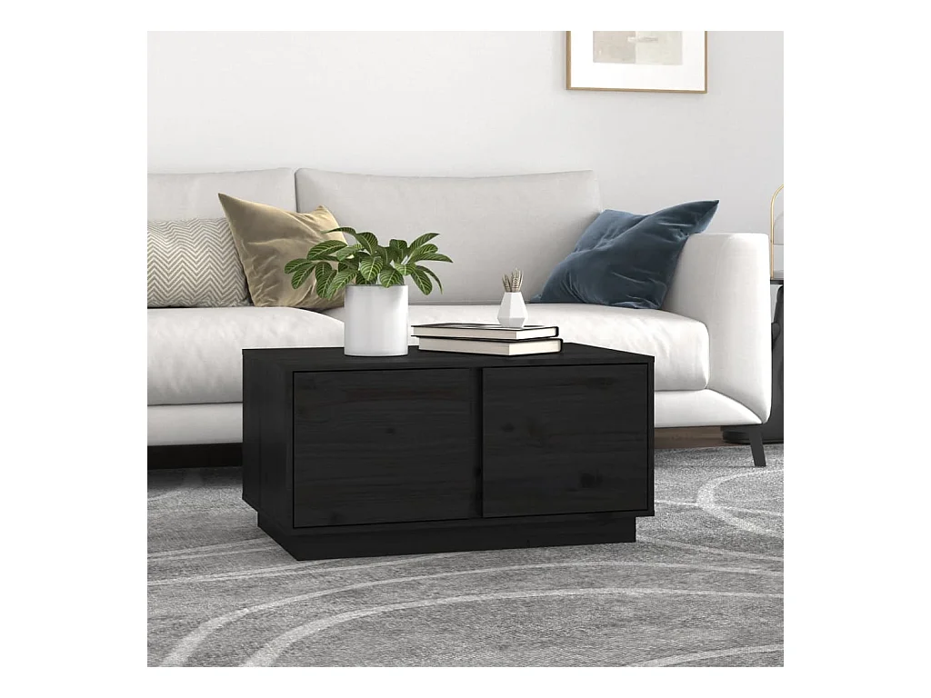 Table basse Noir 80x50x40 cm Bois massif de pin