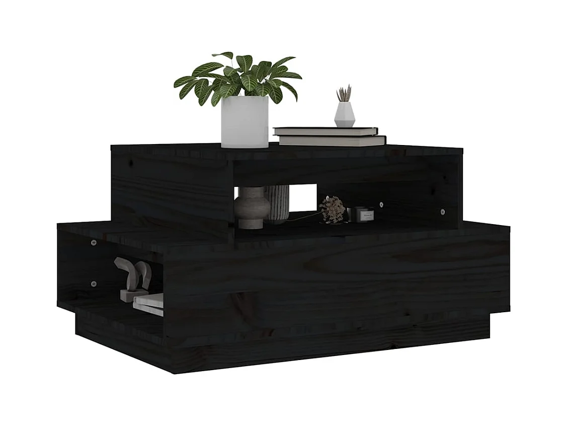 Table basse Noir 80x55x40,5 cm Bois massif de pin