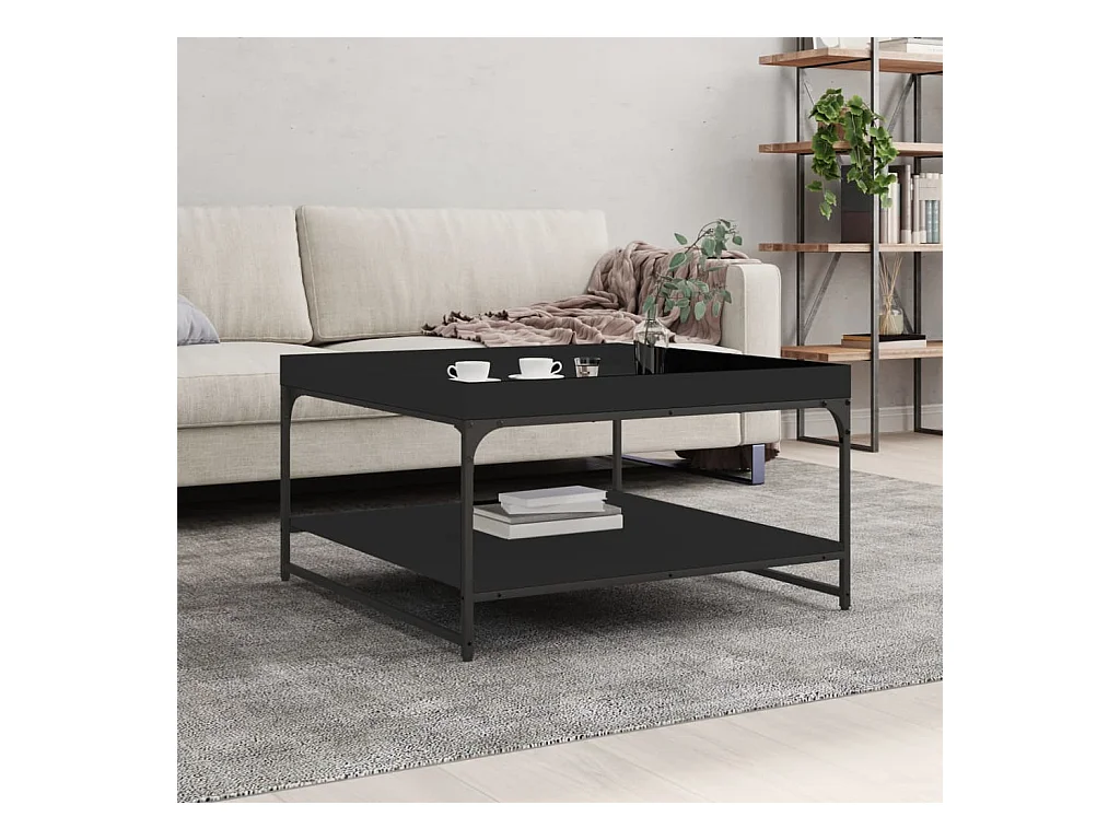Table basse noir 80x80x45 cm bois d'ingénierie et fer