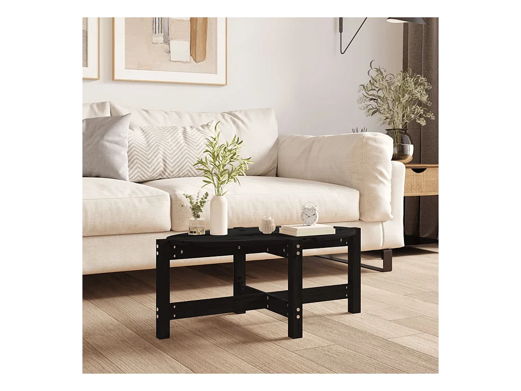Table basse Noir 87x48x35 cm Bois massif de pin OFR29793 BonneVie Meuble