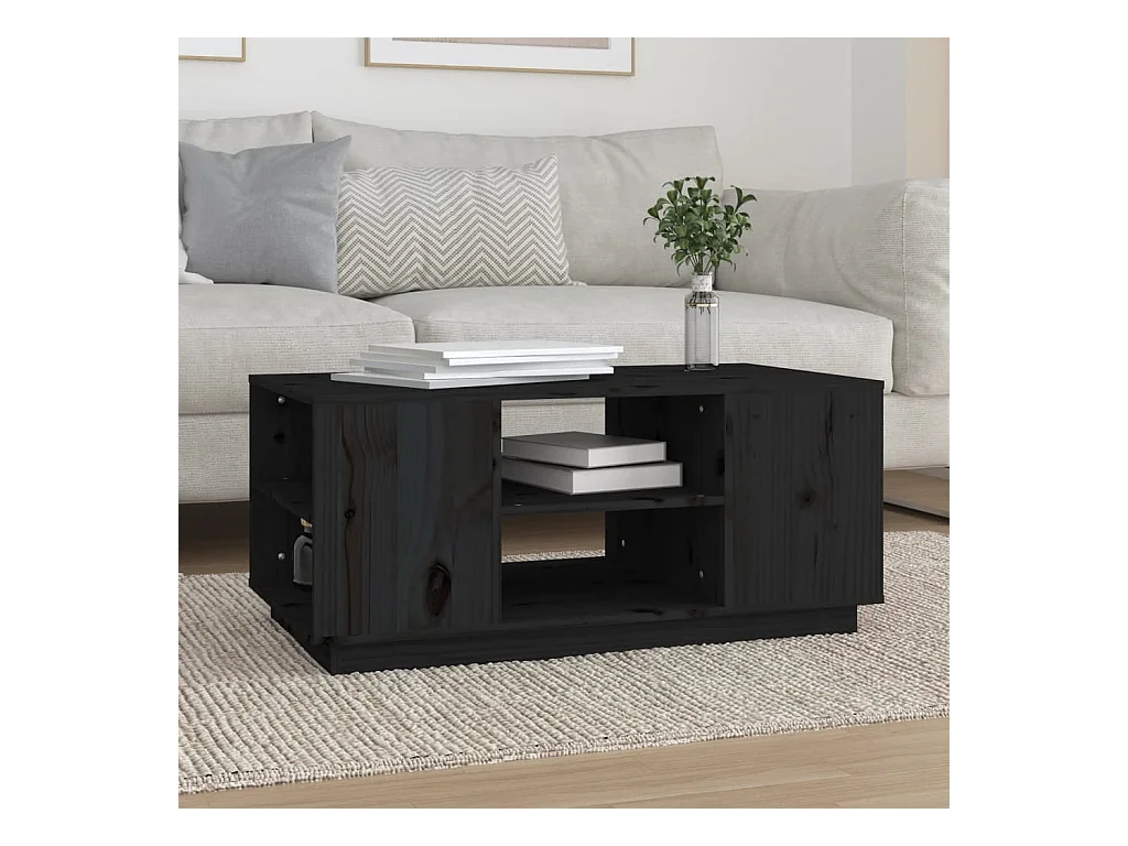 Table basse Noir 90x49x40,5 cm Bois massif de pin
