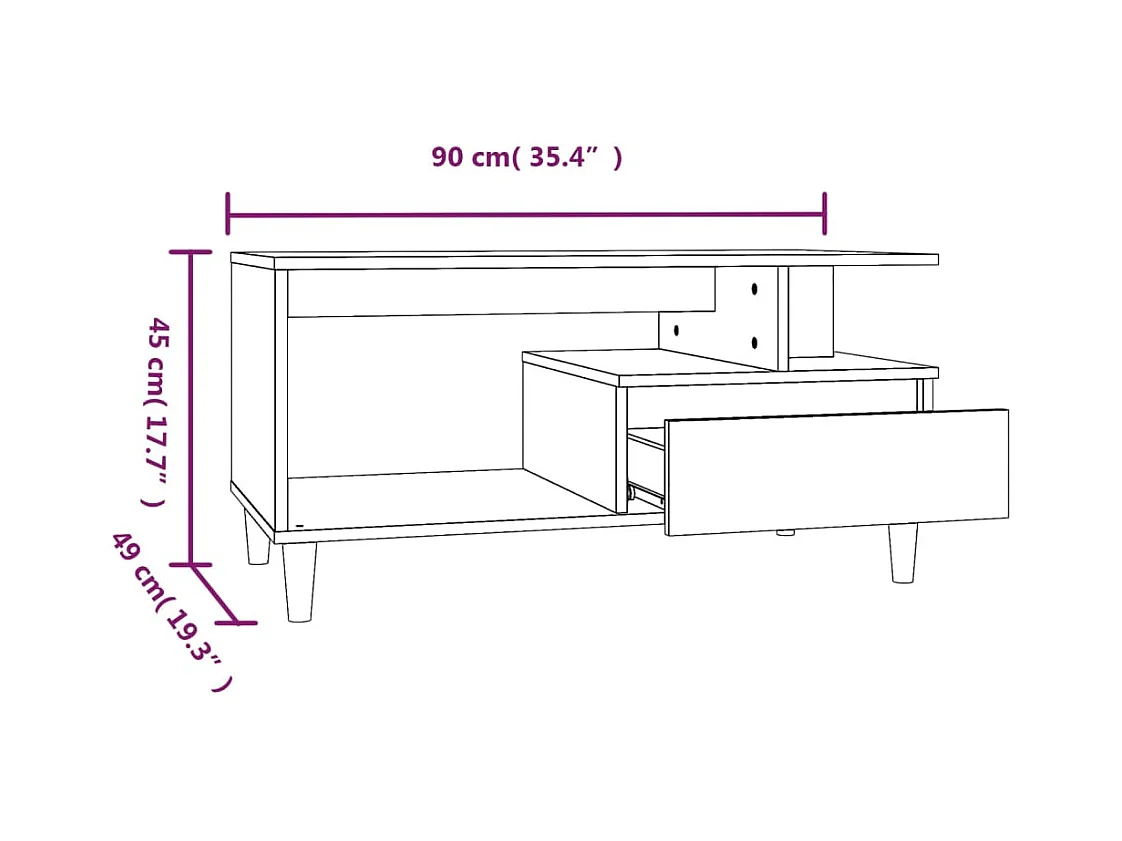Table basse en chêne noir 90x49x45 cm en bois d'ingénierie