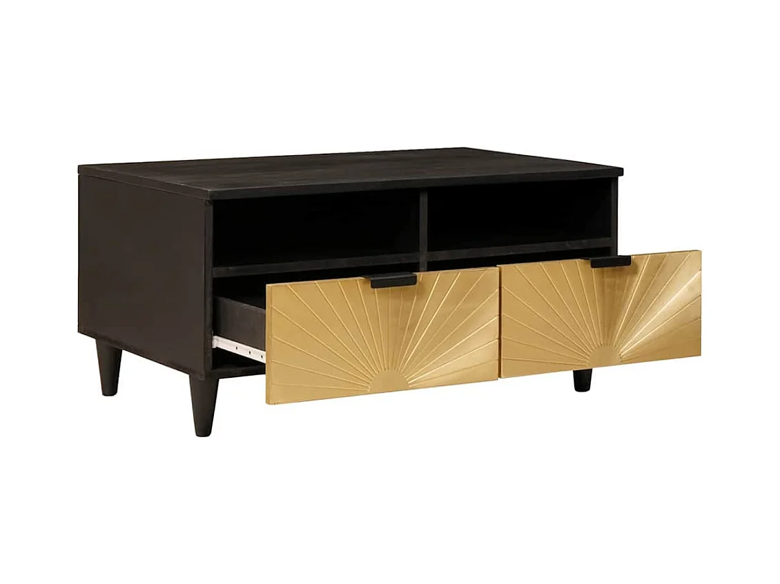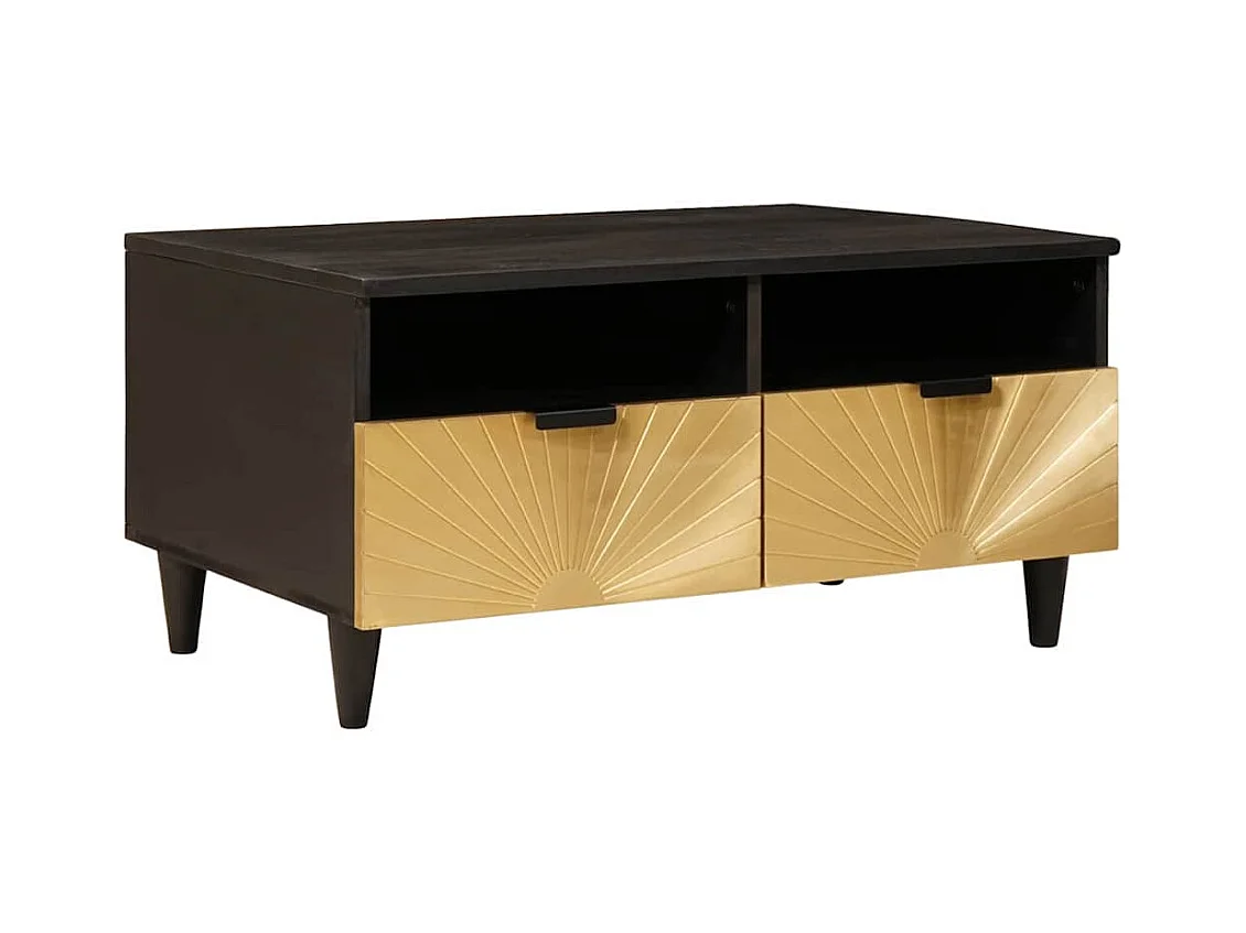 Table basse Noir et or 80 x 54 x 40 cm bois de manguier massif