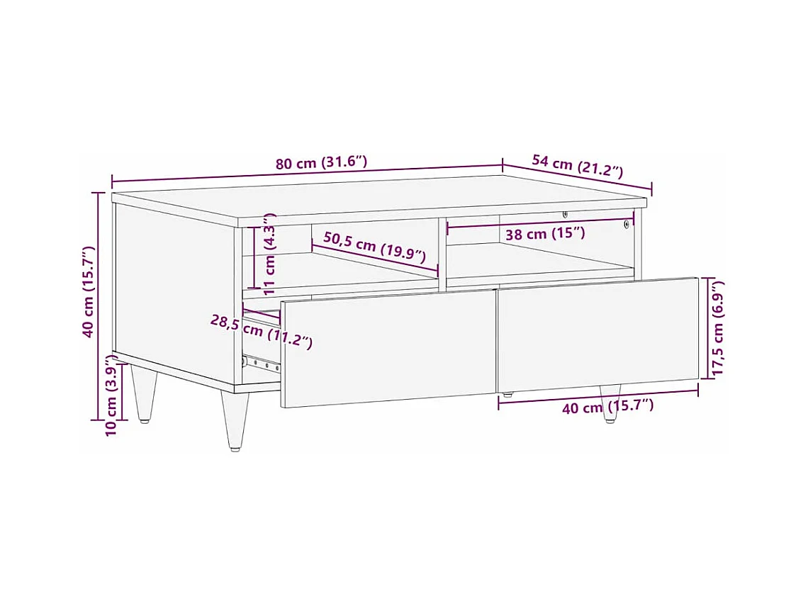 Table basse noir 80x54x40 cm bois d'ingénierie
