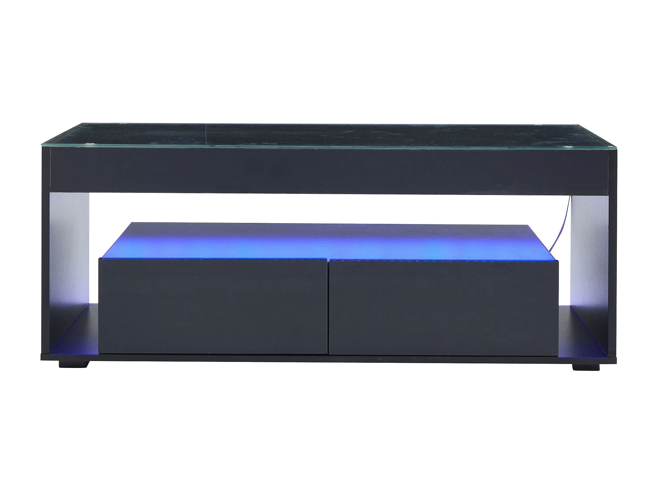 Table basse noir, table basse rectangulaire avec éclairage LED et deux tiroirs, plateau en verre