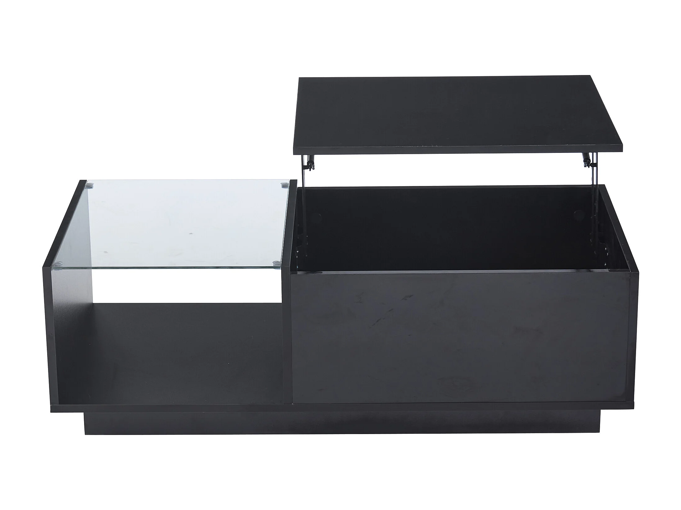 Table basse noir - Table d'appoint avec éclairage LED et hauteur réglable - rangements et étagères cachés - pour le salon