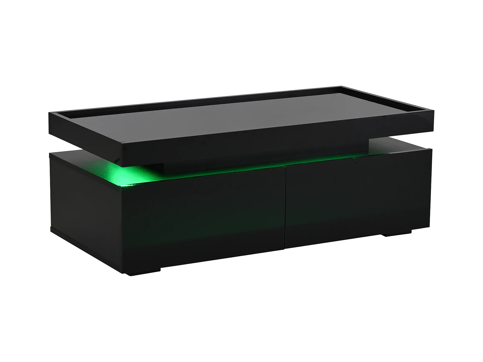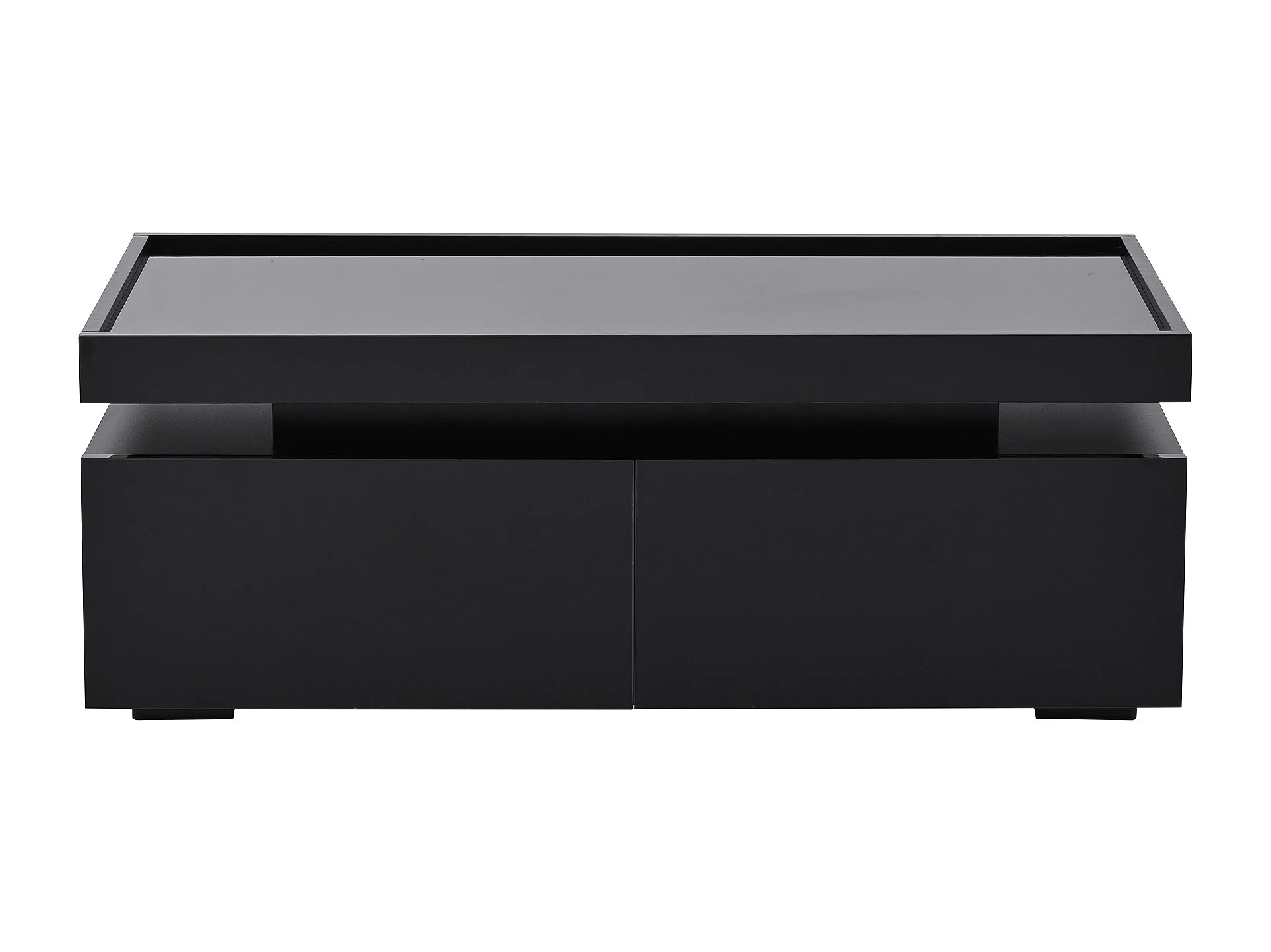 Table basse noire brillante avec éclairage LED et 2 tiroirs de rangement - pour salon
