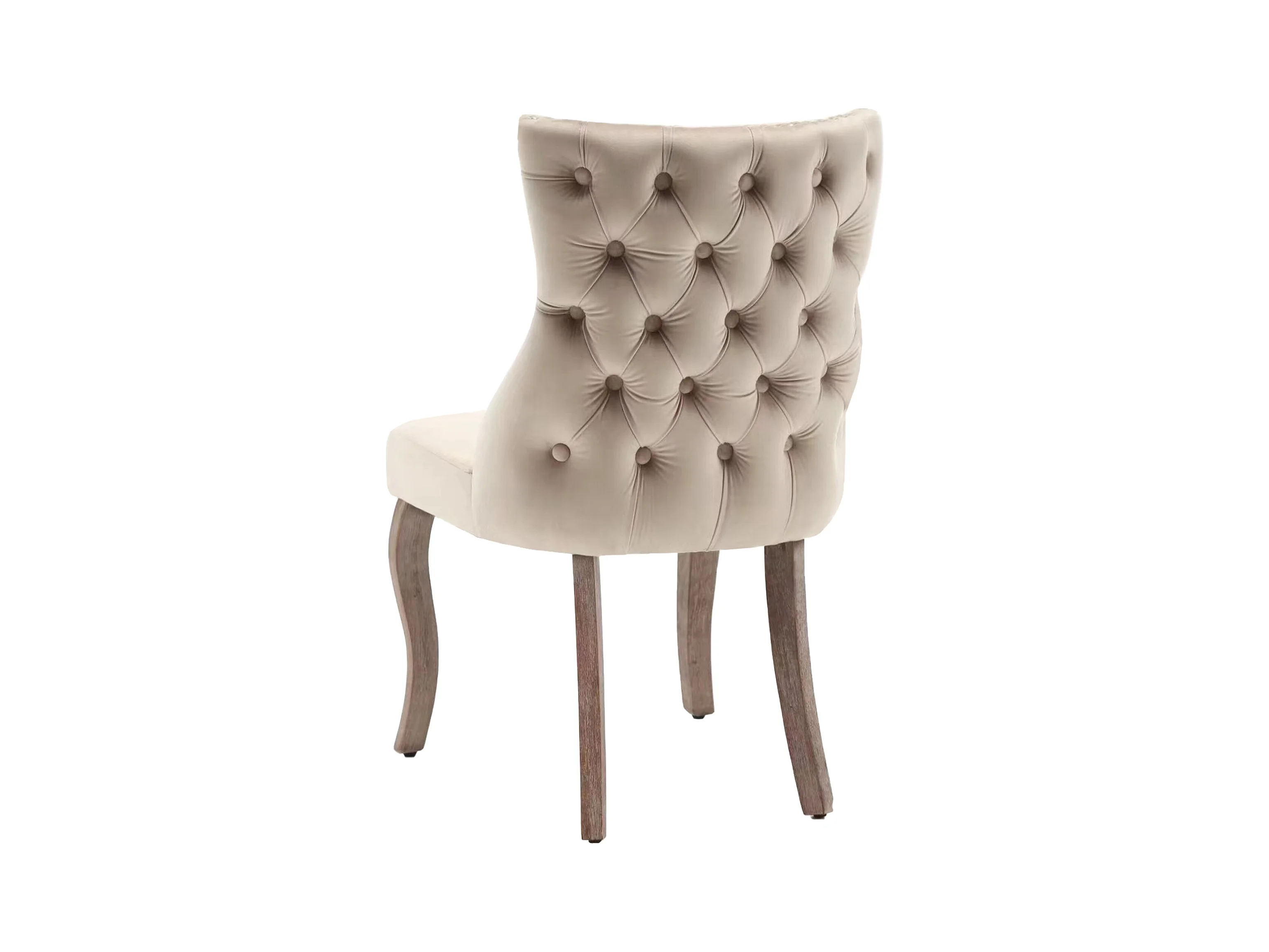 Chaise en Velours Beige avec Dossier Capitonné, Pieds en Bois Massif, Lot de 4 Chaises (50x41x91 cm)