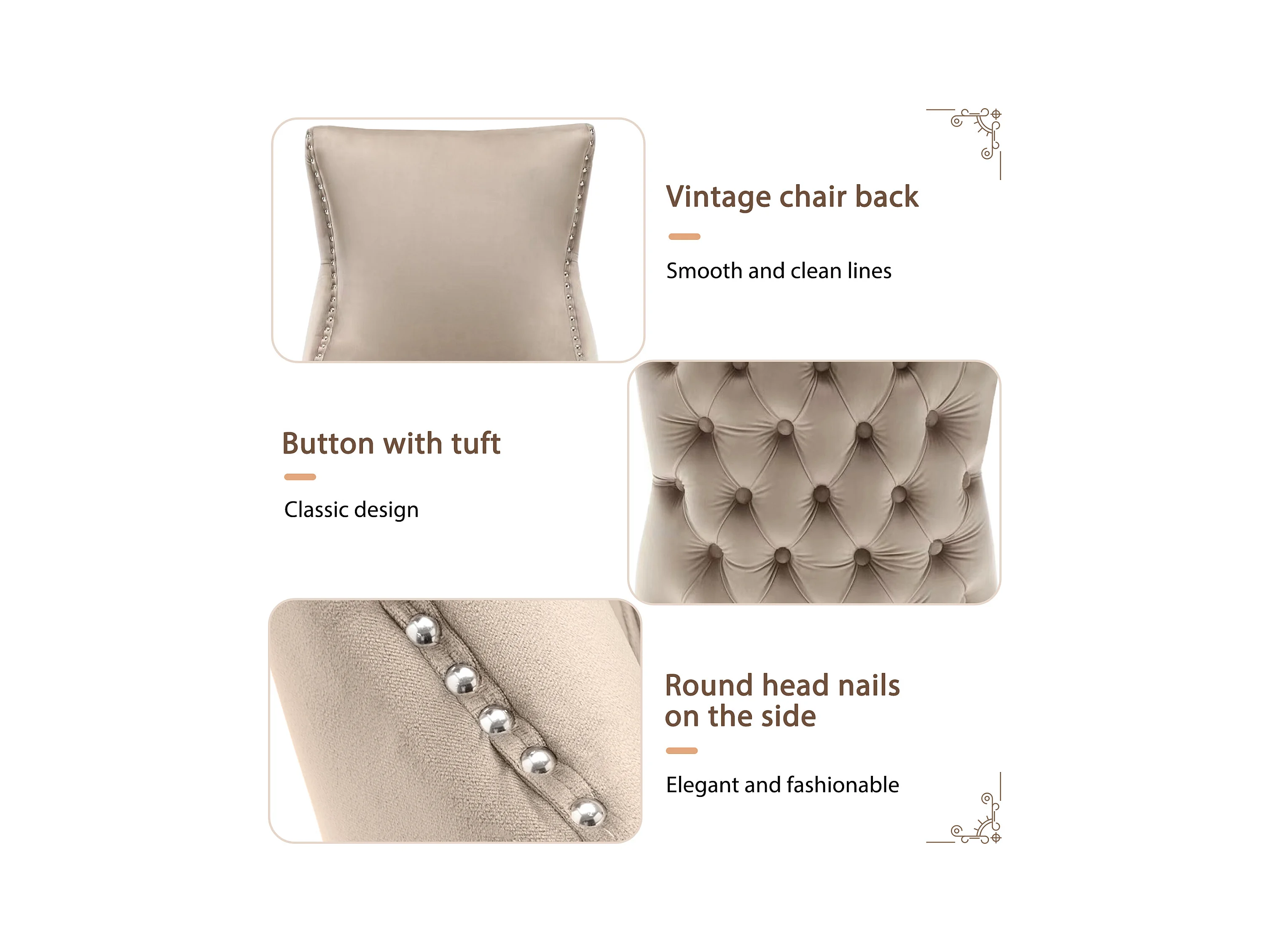 Chaises de salle à manger, Lot de 4, cloche décorative et clous décoratifs, pieds en métal, velours beige (53x62.5x94.5 cm)