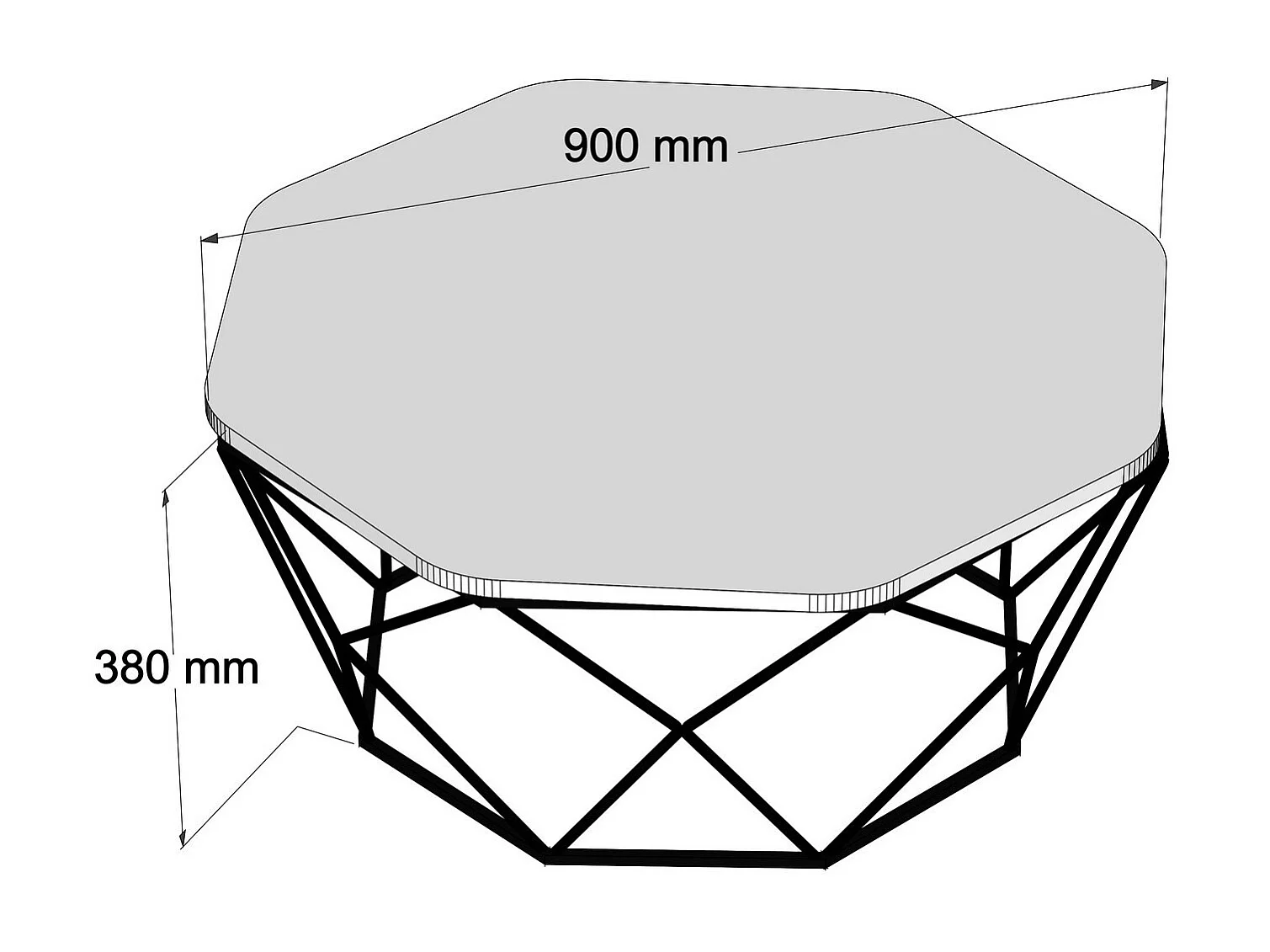 Table basse octogonale bois crème et pieds acier noir Diva 90cm