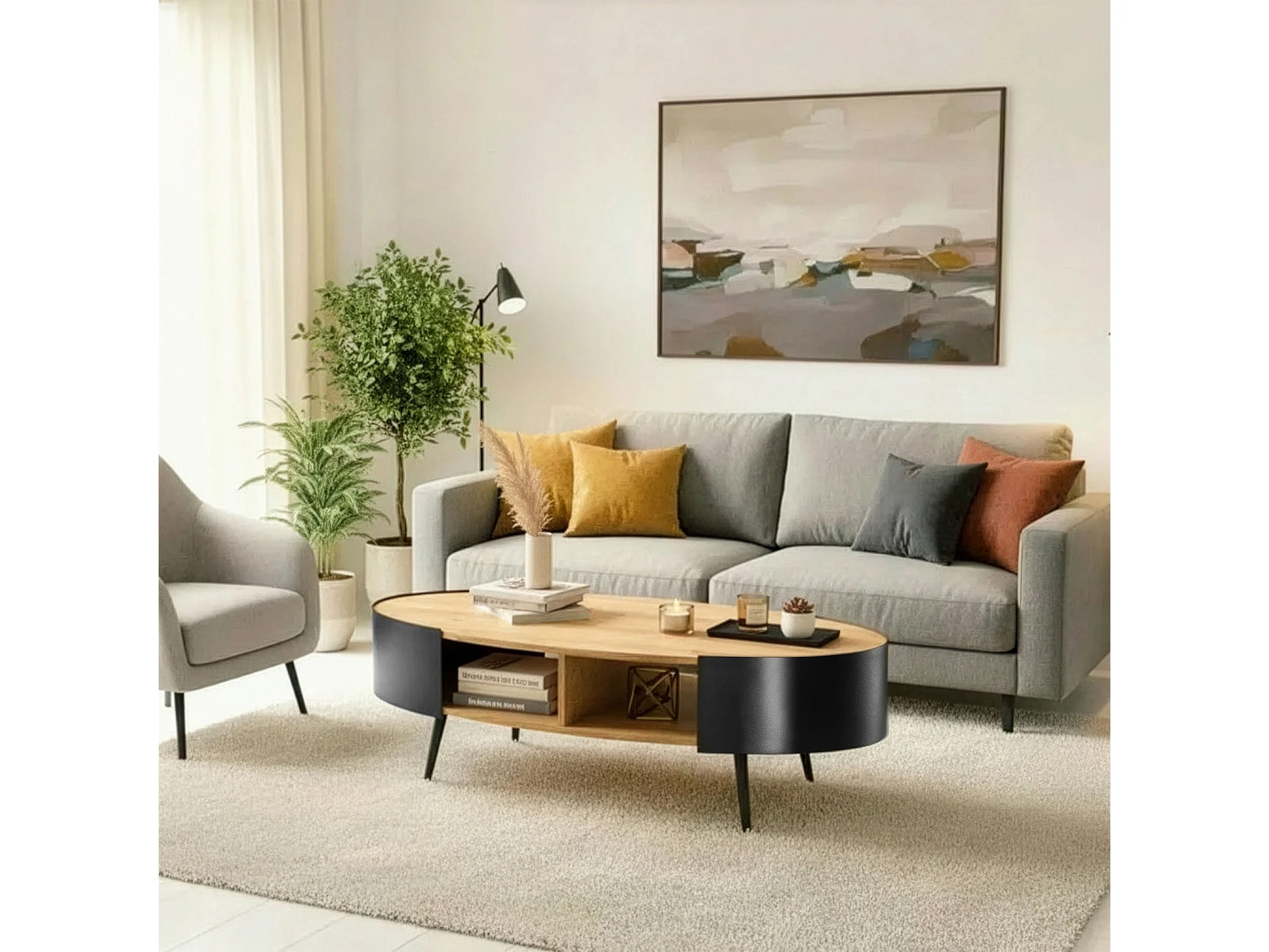 Table basse ovale avec flancs en métal noir L120 cm EKLO