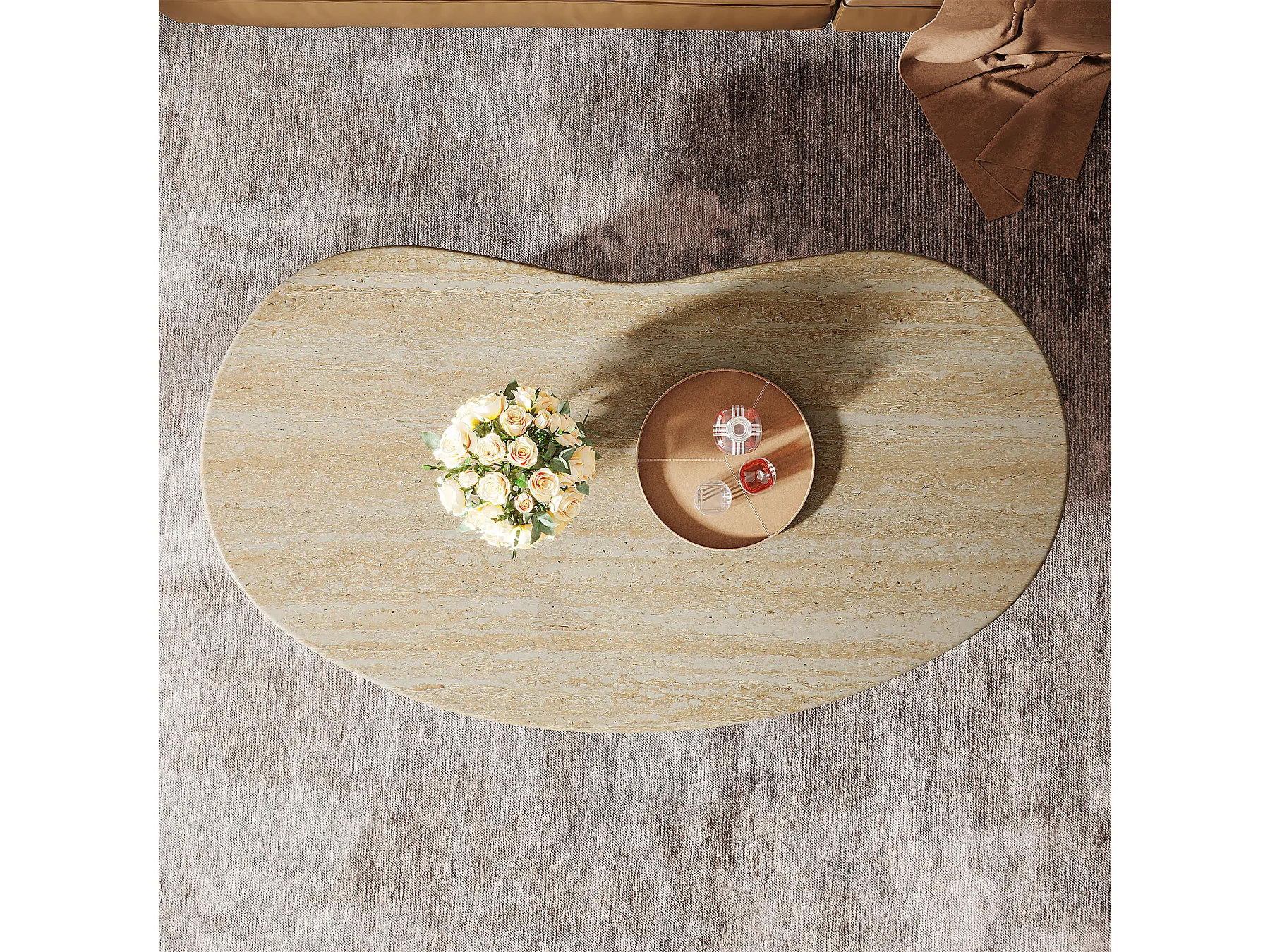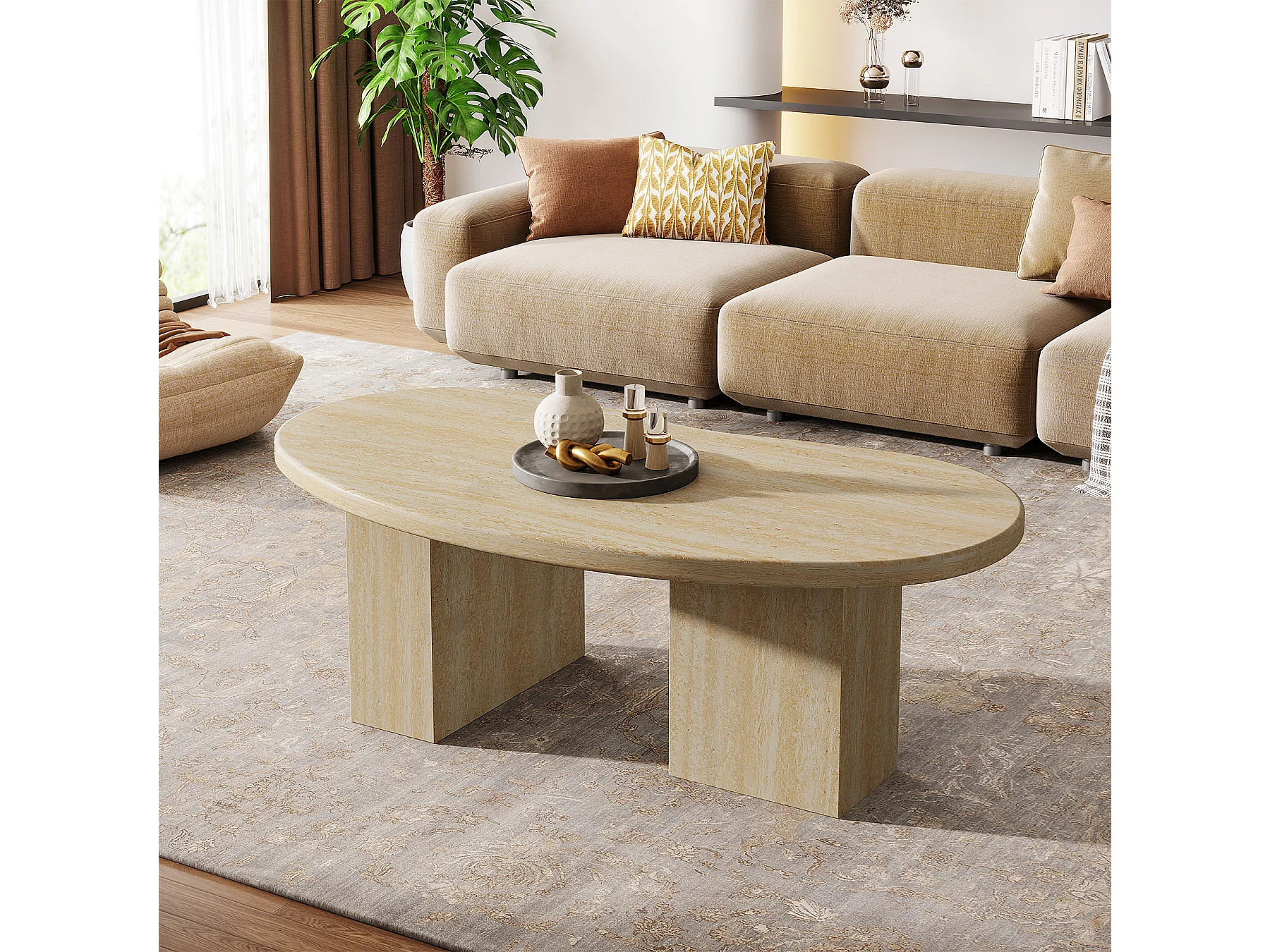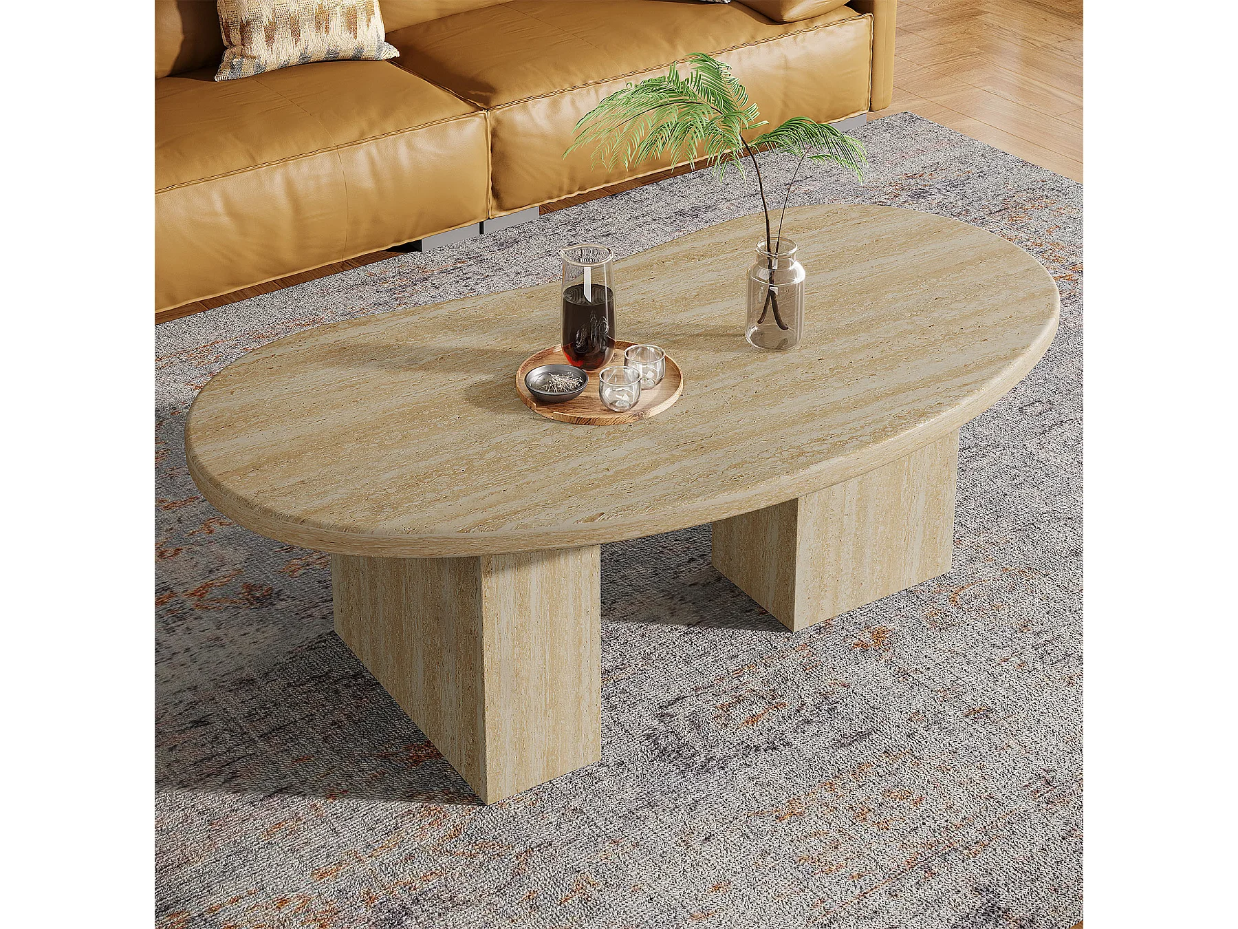 Table basse ovale pour salon, table centrale avec pieds asymétriques
