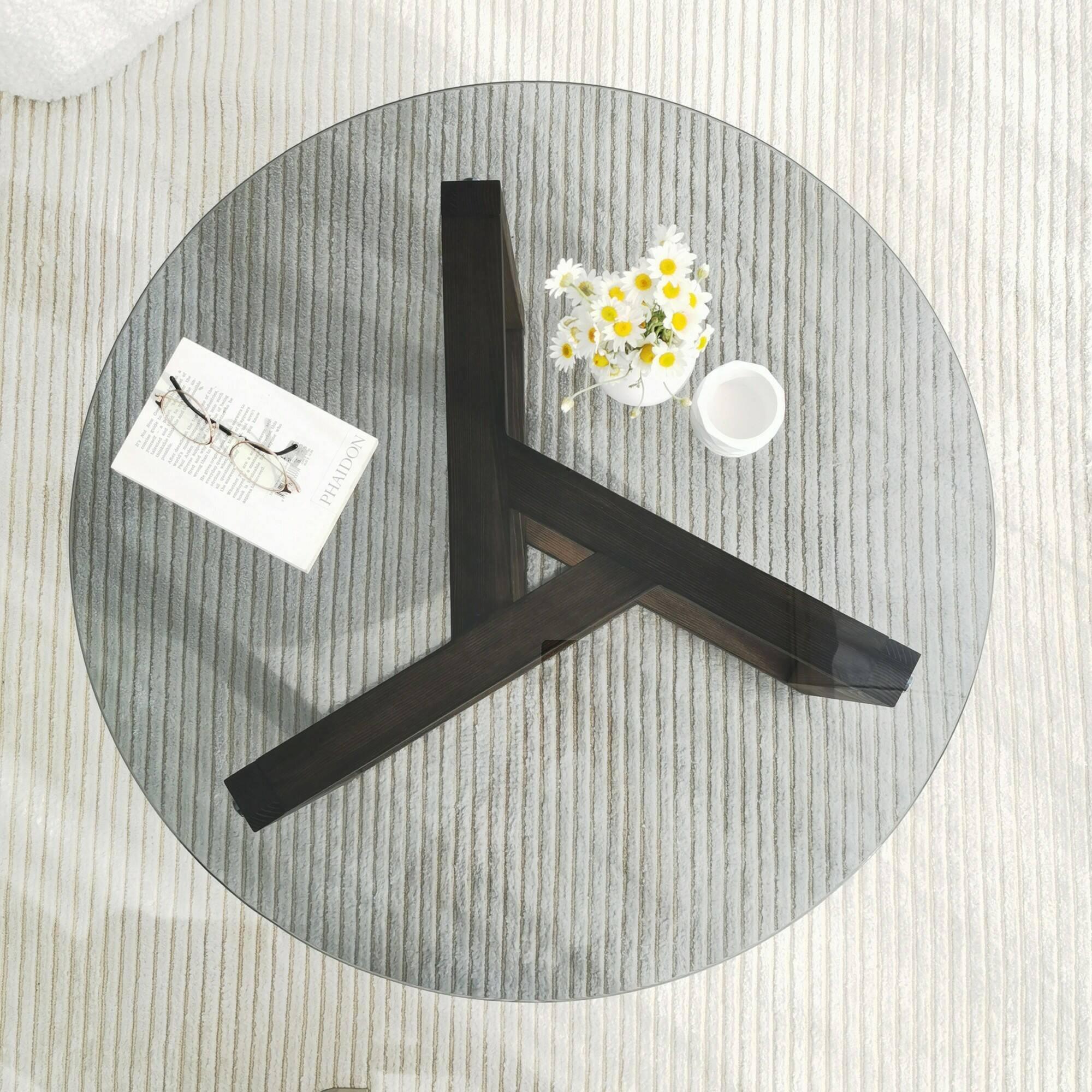 Table Fixe Rondò en Verre Trempé et Pieds Gris Chromés