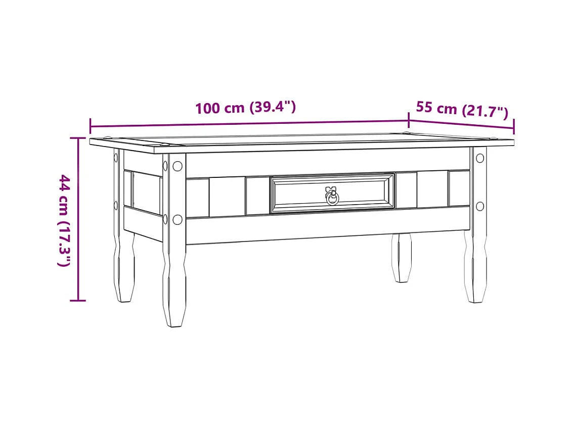 Table basse Pin mexicain Gamme Corona 100 x 55 x 44 cm
