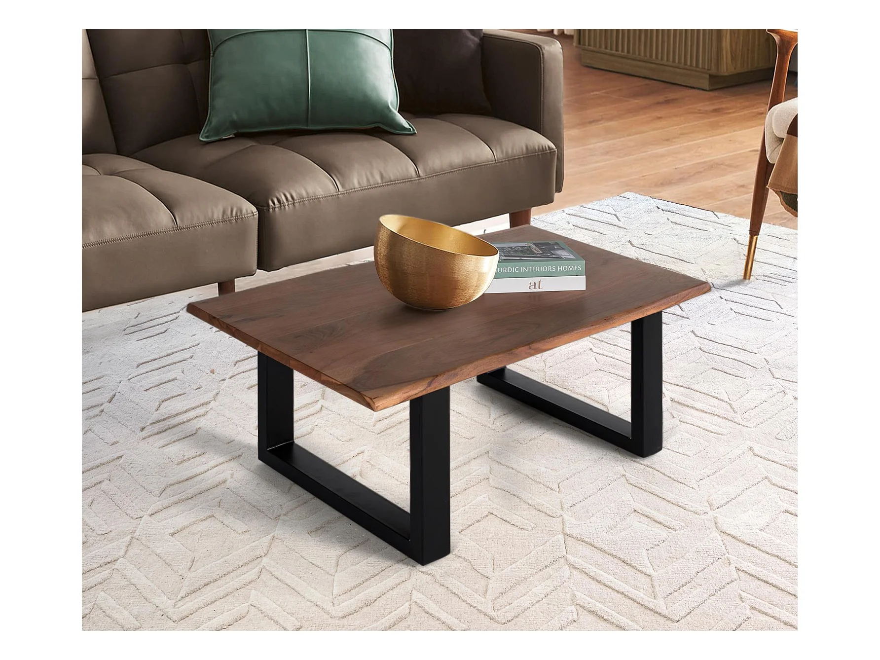 Table basse plateau en bois d'acacia massif et pieds en métal