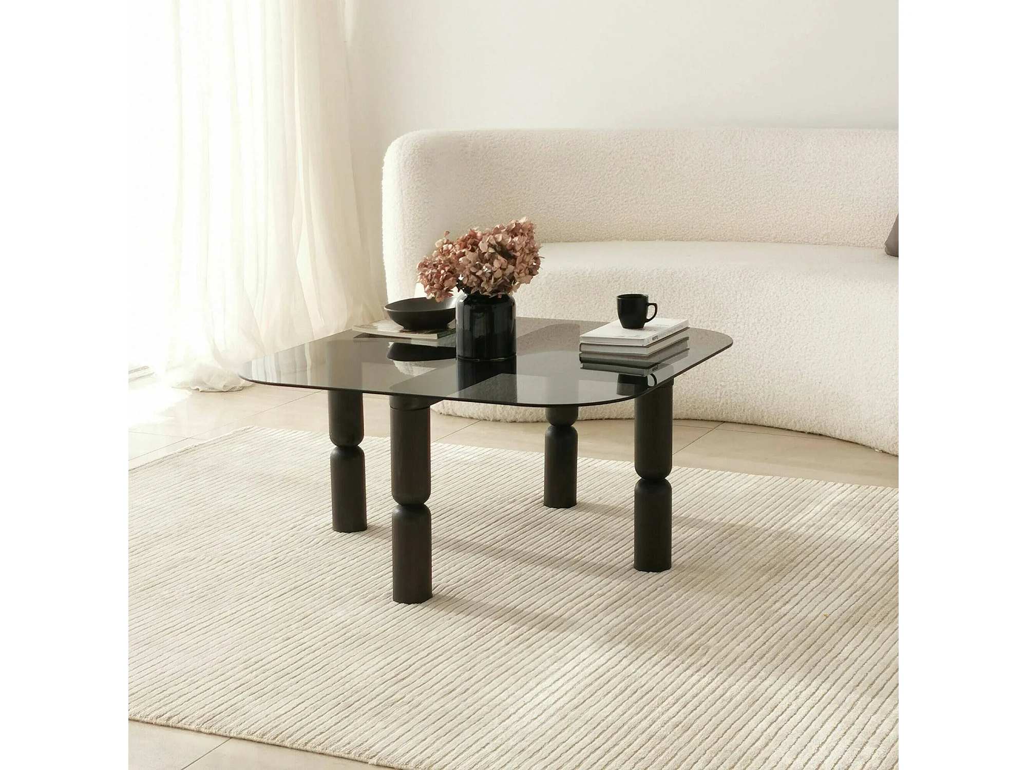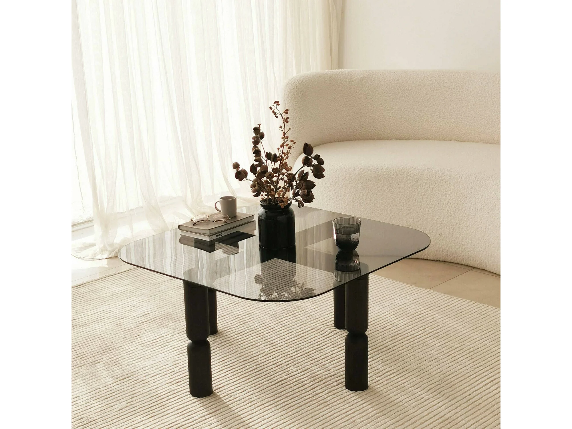 Table basse Psamathe, Table basse, Porte-revues pour canapé, Etagère de salon, 80x80h40 cm, Anthracite et Fumé