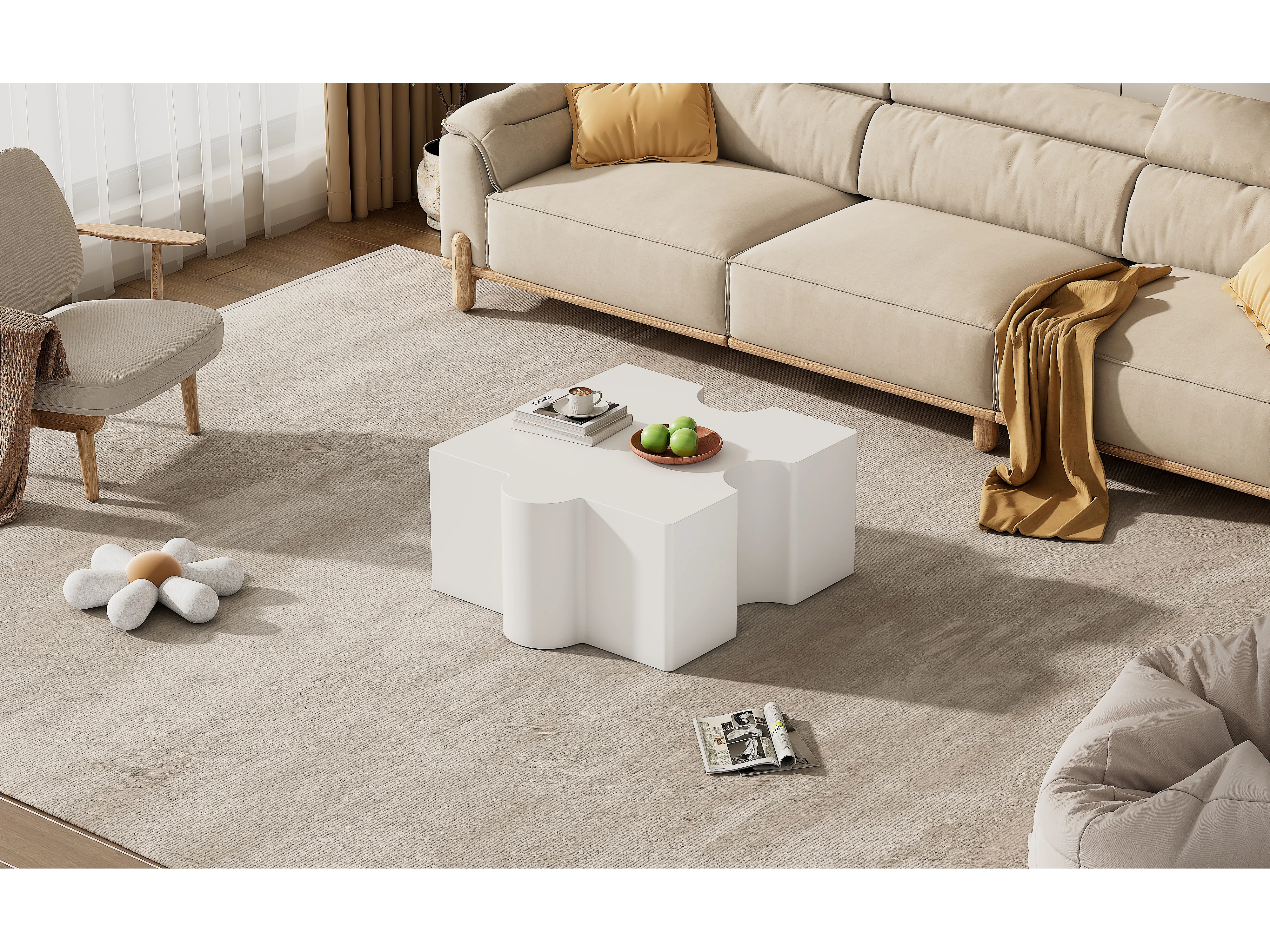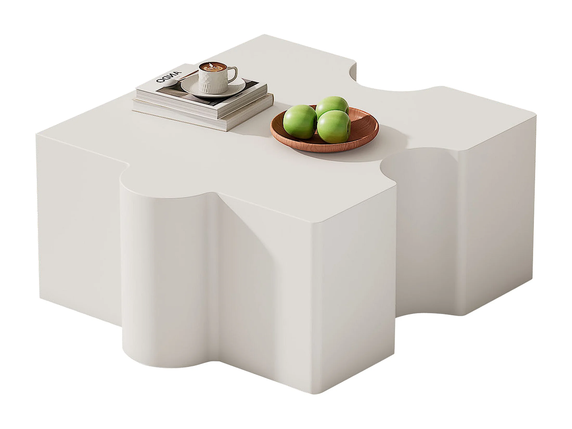Table basse puzzle design abstrait, structure originale et moderne, MDF, blanc (65x65x32cm)