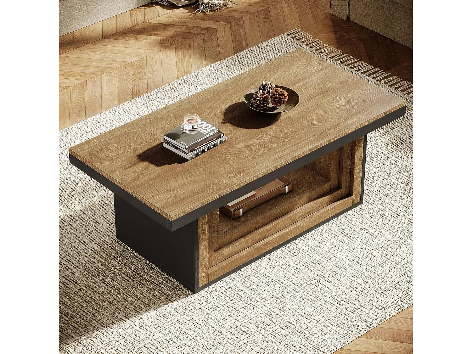 Table basse rectangulaire avec rangement ouvert, table basse rustique cannelée de 120 cm