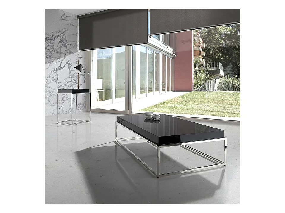 Table basse rectangulaire bois laqué crème et acier inoxydable Gucca