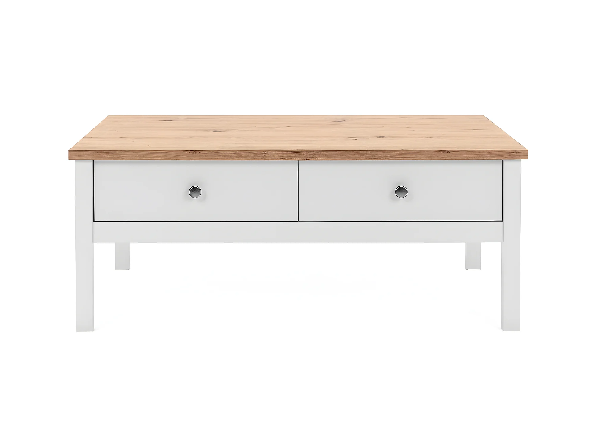 Table Basse 2 tiroirs L100 cm - Décor Blanc - BERGEN